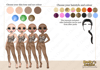 three different skin tones, three eye colours and 16 hair colours