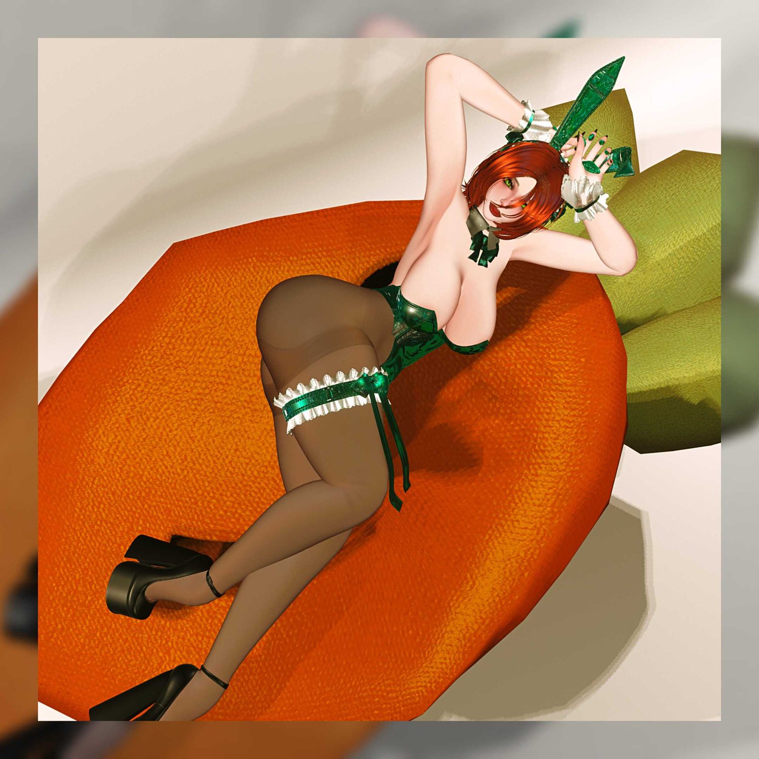 Toggles: Tail coat, Ear headband, Wrist cuffs, Neck bow, Thigh garter, thigh garter bow, Carrot bean bag.