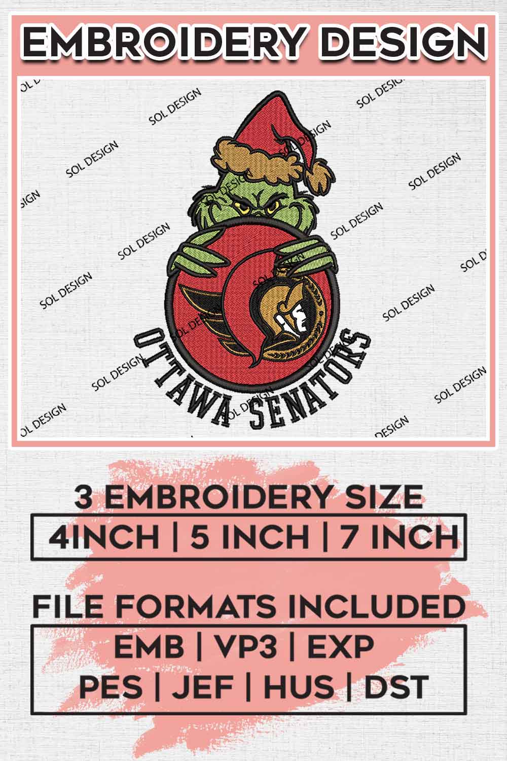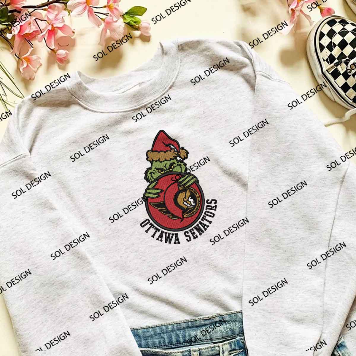 NHL Ottawa Senators Team x Grinch Face Holding Ornament Embroidery Designs, Grinch Embroidery Files, NHL Senators Hockey Team Logo Embroidery, Christmas Machine Embroidery Design, Digital Download