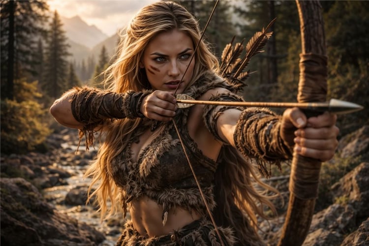 In 10K, the magic is in the details: delicate lace and wind-torn fabric, ornate jewelry, storm-lit skin, and the razor shine of steel—an image that feels like the opening scene of an epic.