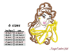 Belle APPLIQUE, Beauty and the Beast Inspired Embroidery Design, 6 sizes, Instant Download