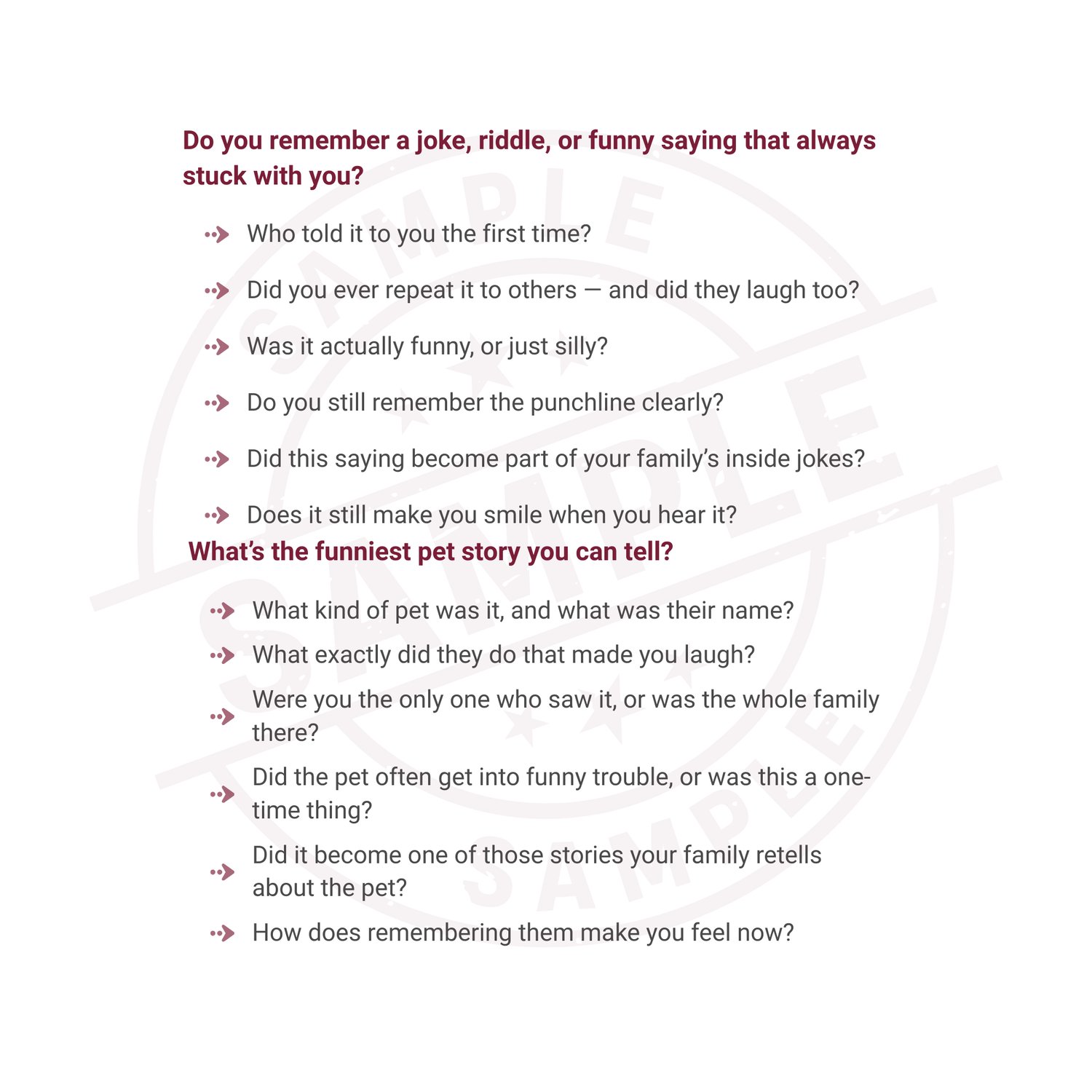 ✔ 150+ Memory Sparks – Guiding questions for deeper details
