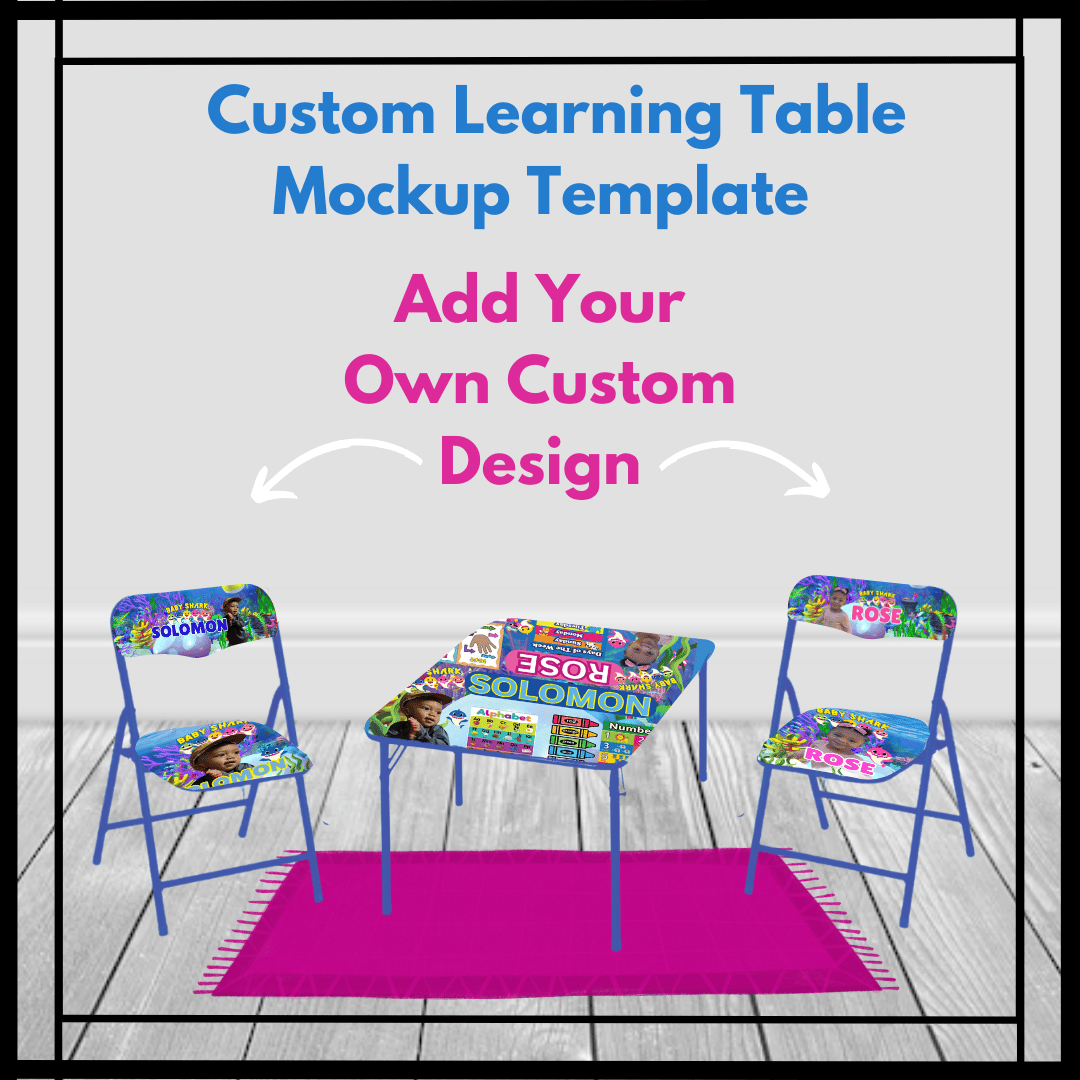 Create a fun, engaging learning space for your child with this Custom Learning Table Mockup Template!