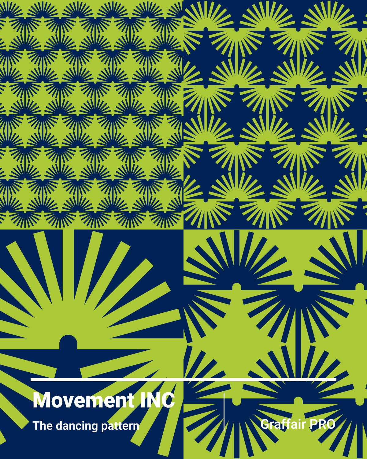 Movement INC: A sliced, wavy, symmetric pattern referring to modernism with a sense of motion and cheerful spirit. Cover your products, story, and/or message with the Movement INC pattern design if you want to sound more like a celebrity.