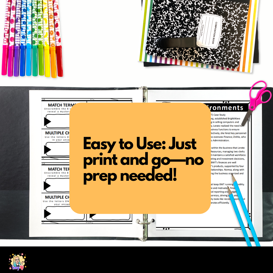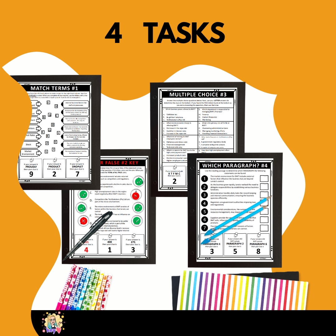Bring a fresh, interactive approach to your classroom with this Business Studies Escape Room, specifically designed for Grade 10 Term 1 Business Studies, focusing on the business environment. As a seasoned teacher, Iโve seen firsthand how students often struggle with understanding different business environments and functions. This Escape Room transforms those challenges into an enjoyable and engaging experience. ๐ฏ