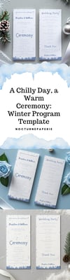 Celebrate your winter wedding with this elegant program template featuring a modern seasonal design. This editable printable timeline card is perfect for creating a stylish ceremony handout for your wedding event. It’s part of our seasonal collection on NocturnePaperie—explore other seasons like Autumn, Spring, and Summer.