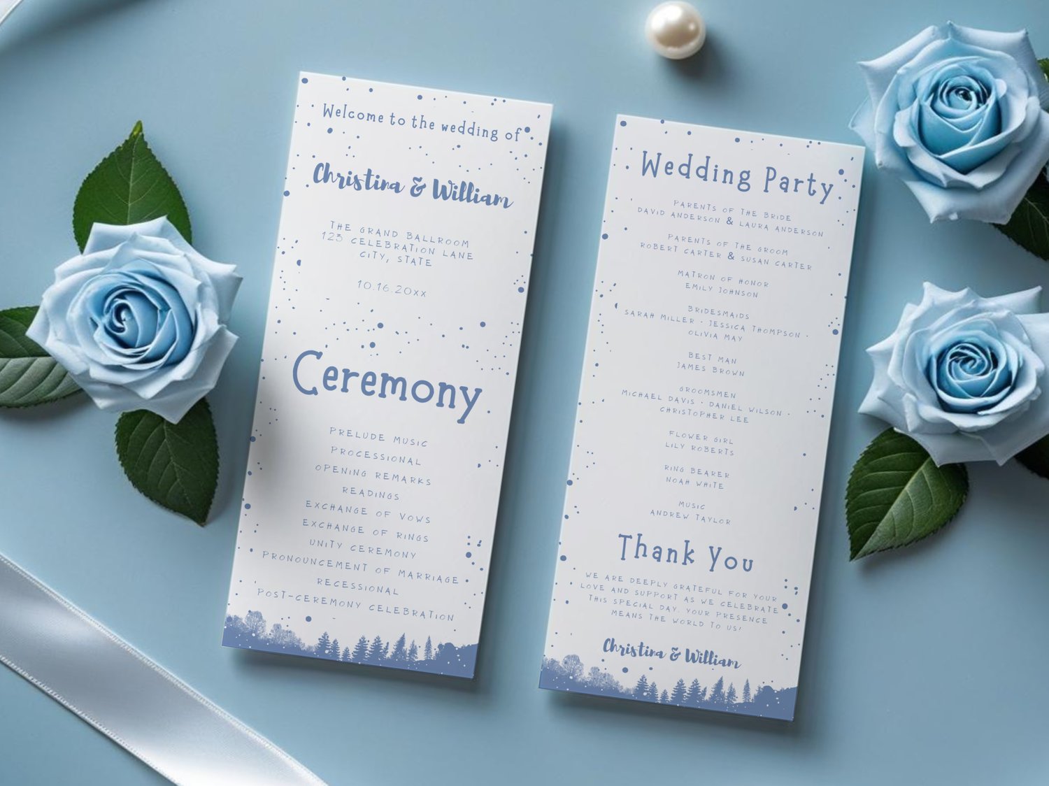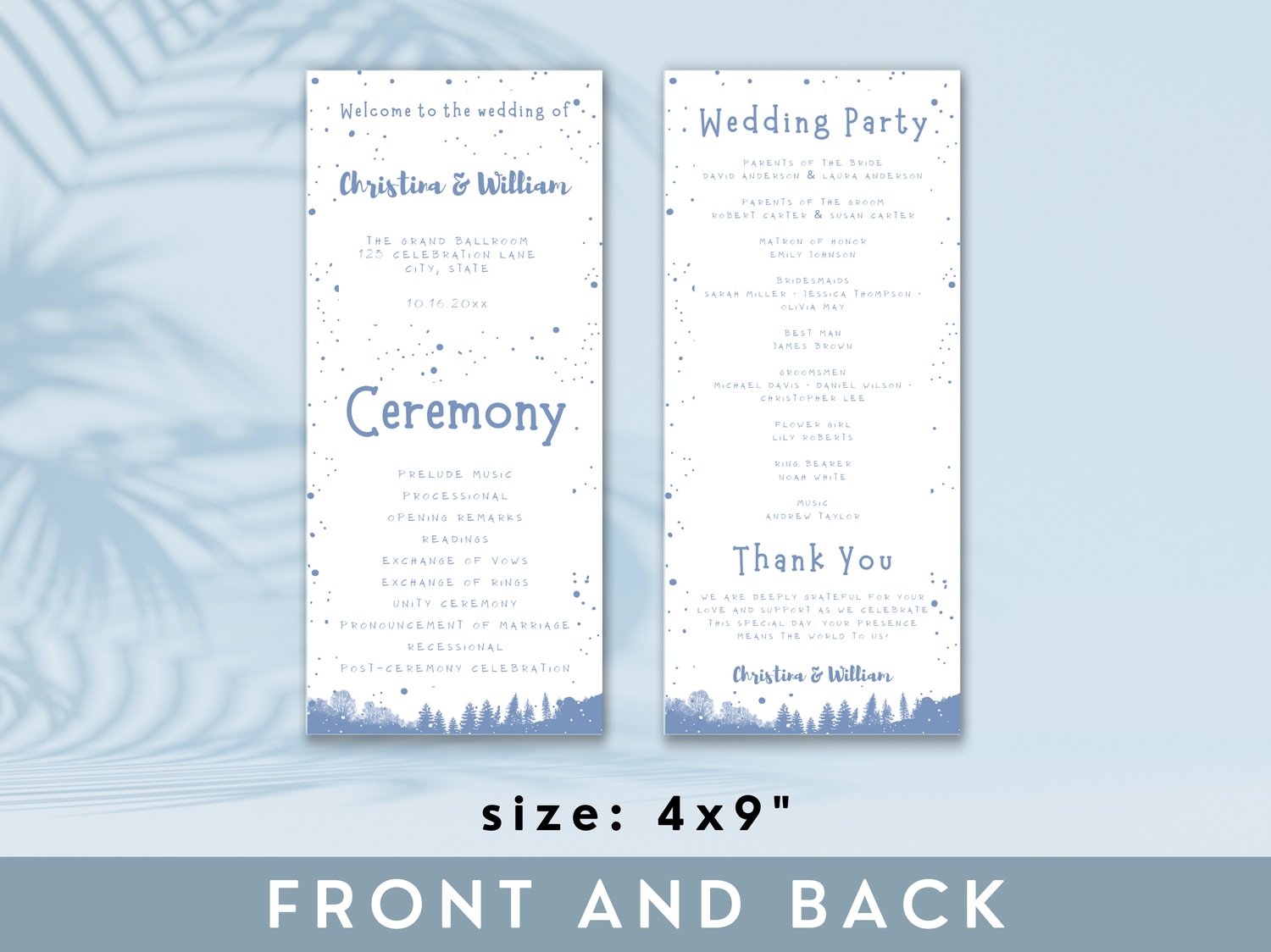 Winter Wedding Program Template Printable Timeline Card Editable Ceremony Handout Modern Program For Winter Theme Wedding Event Design 006