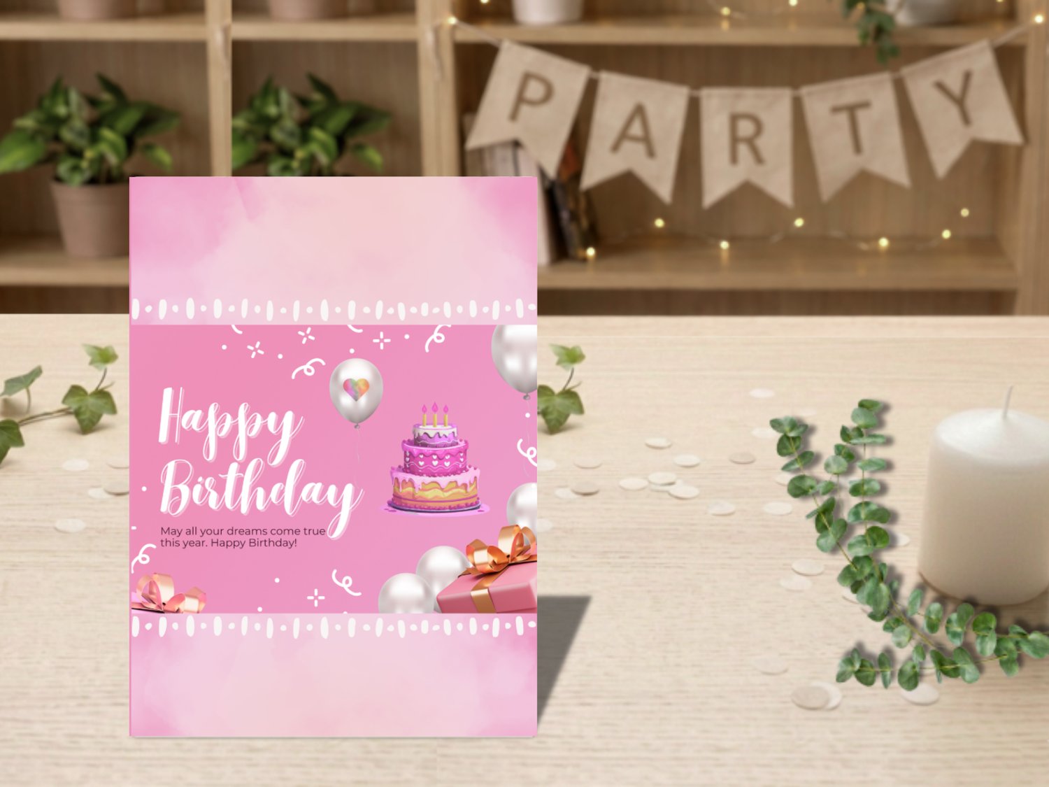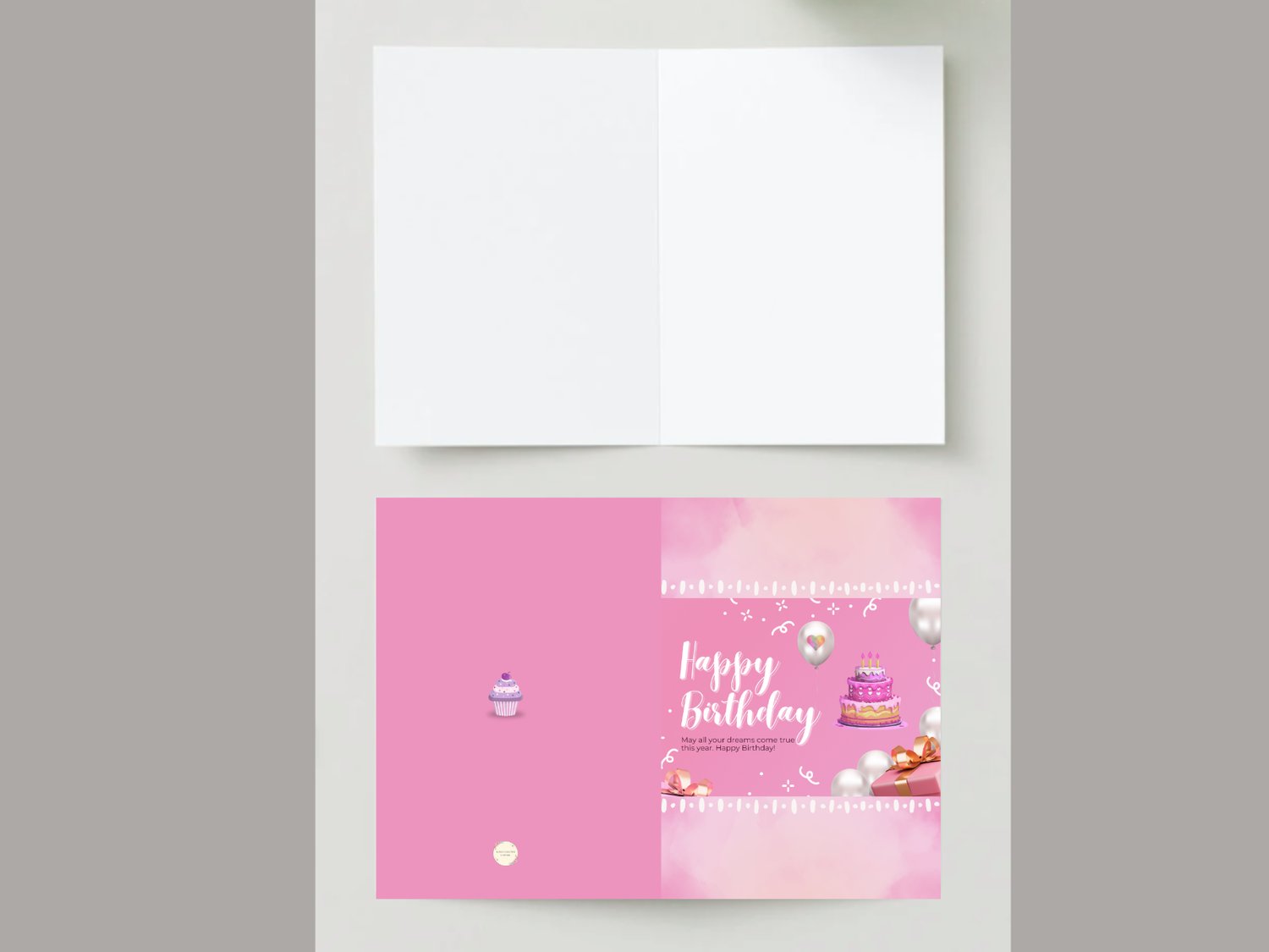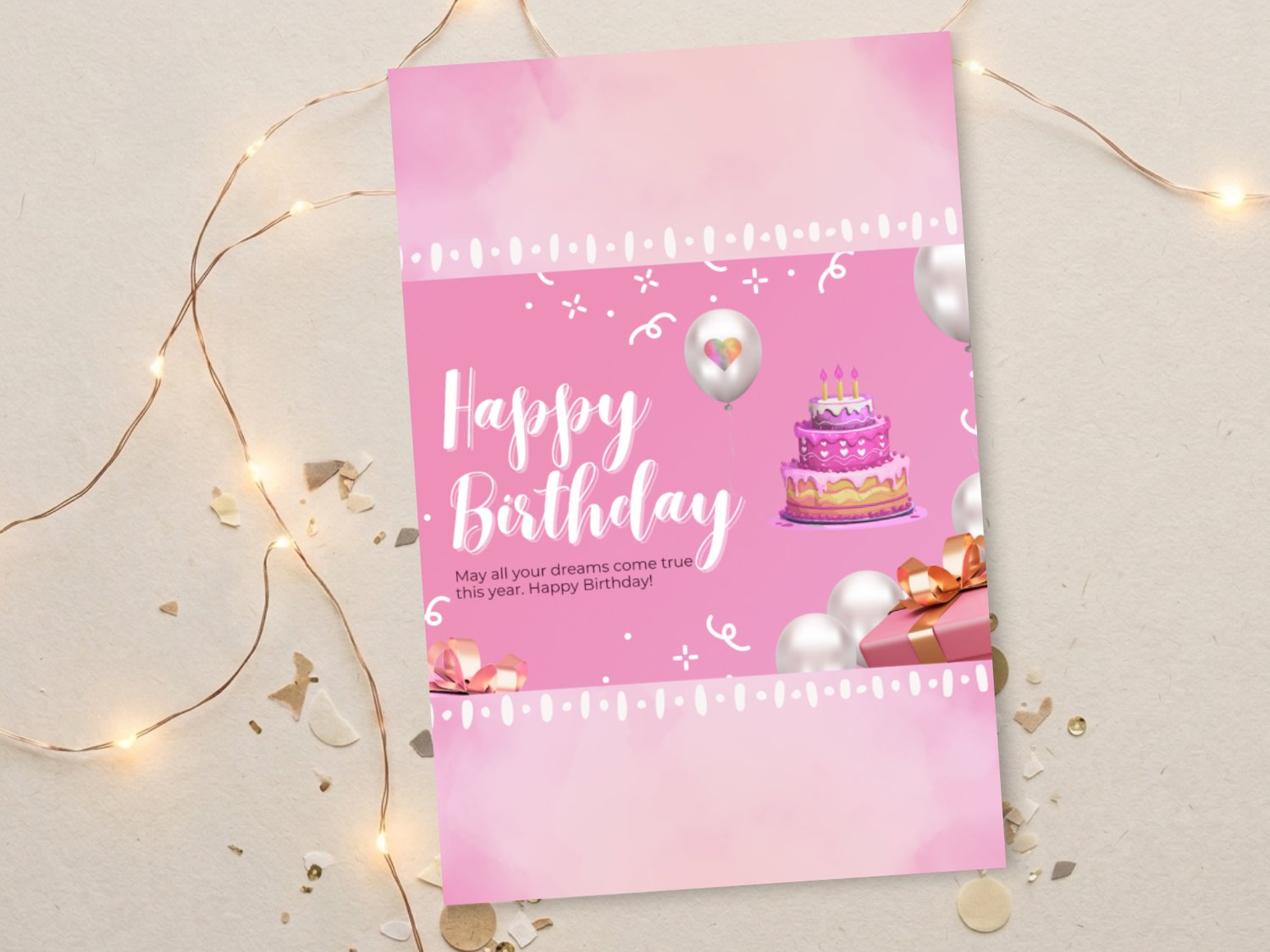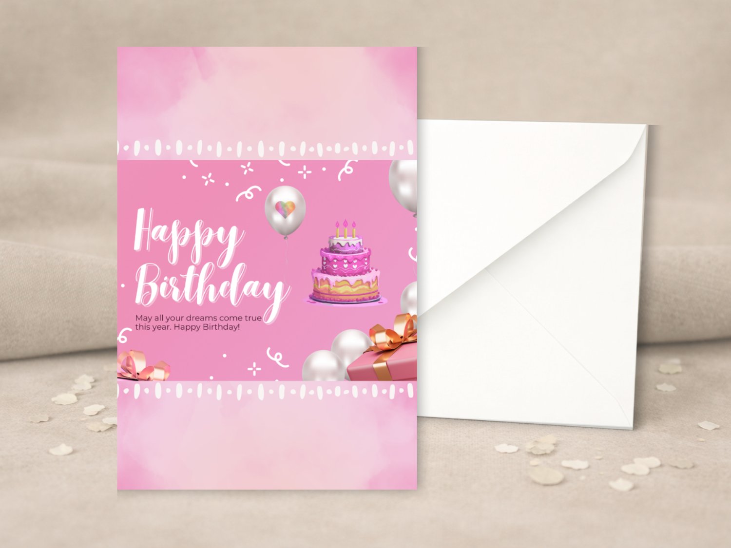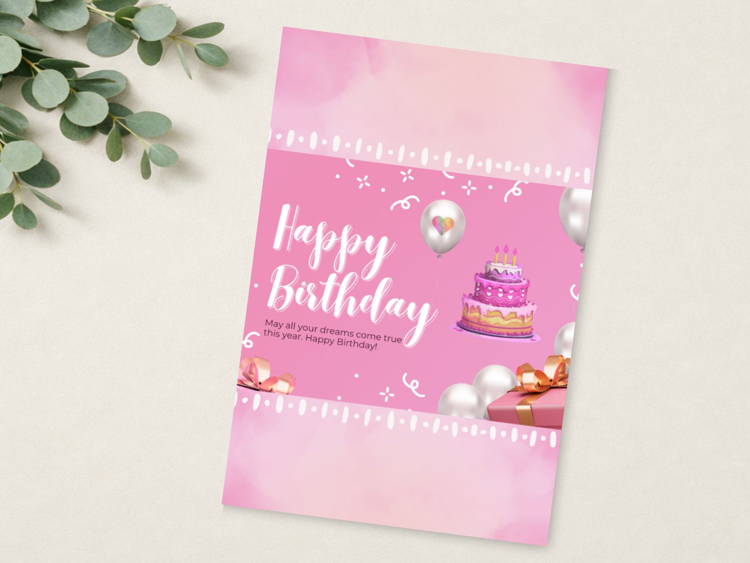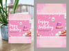 Brighten someone's special day with this sweet pink birthday card! Featuring a cheerful birthday cake, balloons, and presents on a soft pink background, this printable card is perfect for girls, teens, or anyone who loves fun and festive designs.