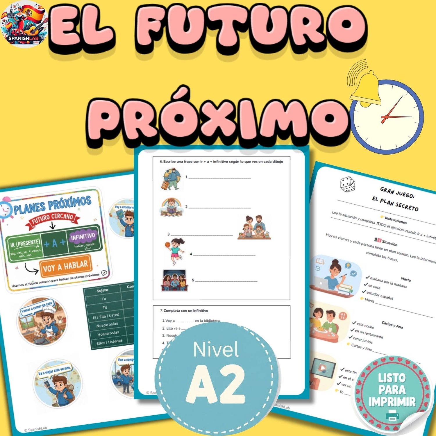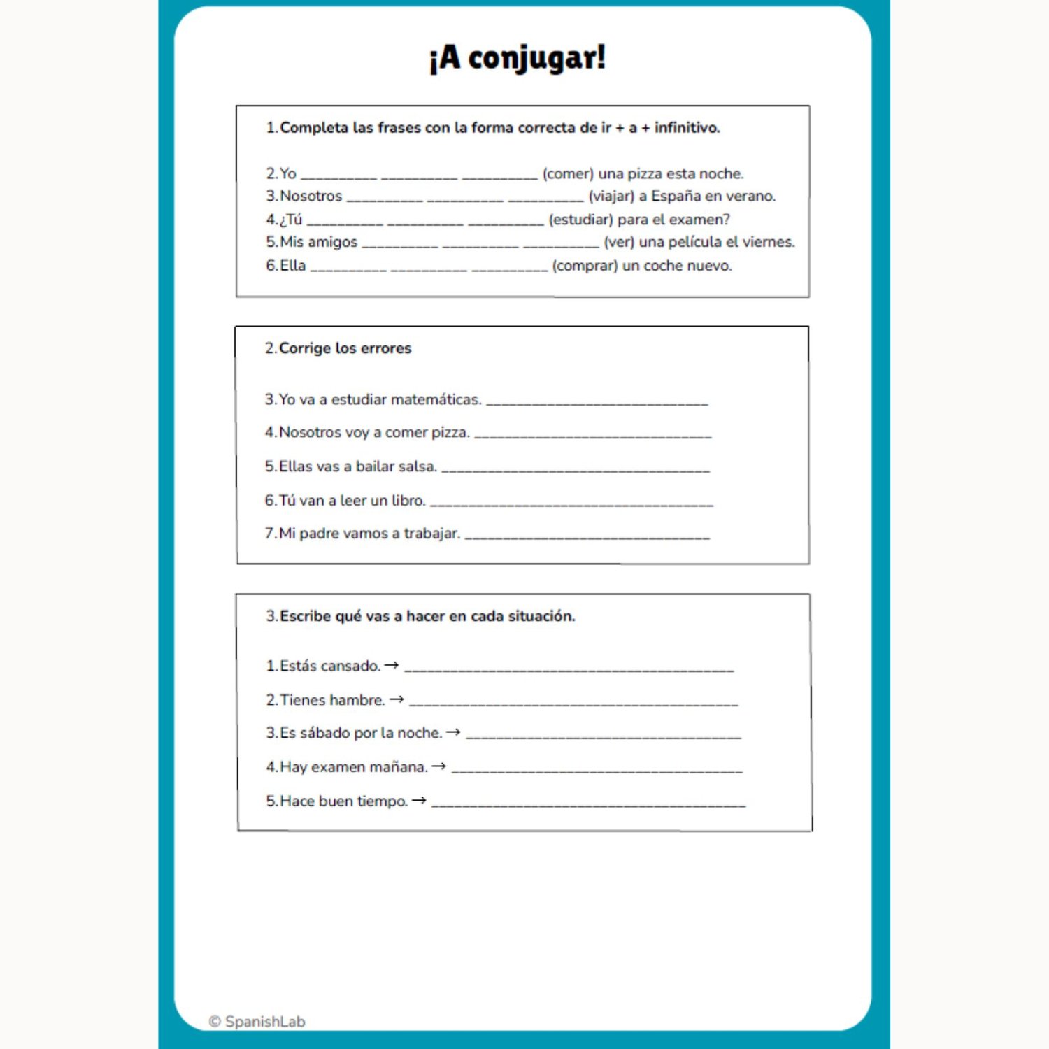 This Spanish worksheet on Futuro Cercano (ir + a + infinitive) is perfect for A1–A2 learners who are starting to talk about future plans and intentions in a simple and communicative way.