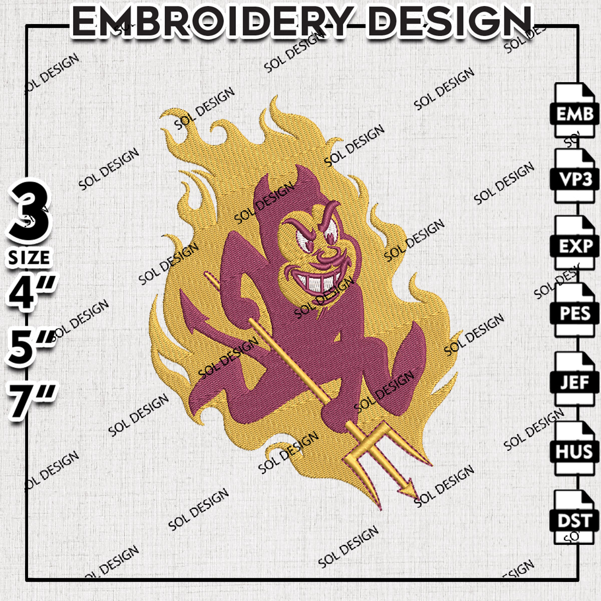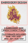 Arizona State Sun Devils Football NCAA Team Mascot Logo Embroidery Designs, NCAA Arizona State Sun Devils Machine Embroidery Files, NCAA Logo embroidery designs, NCAA Arizona State Sun Logo, Digital Download