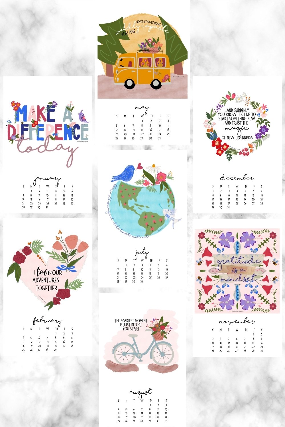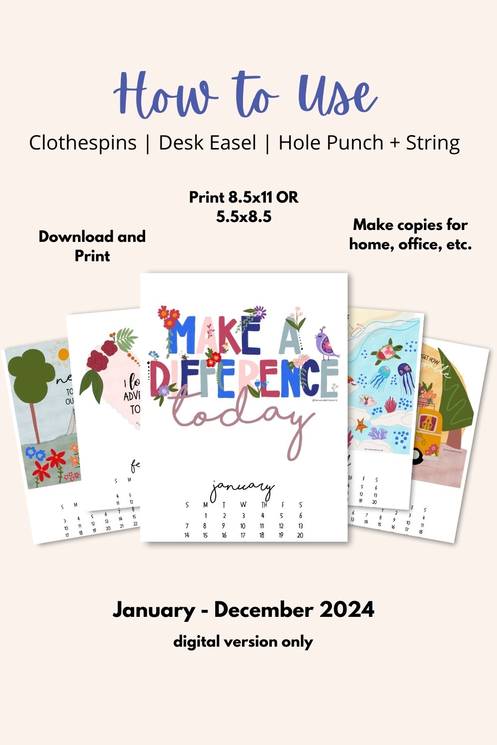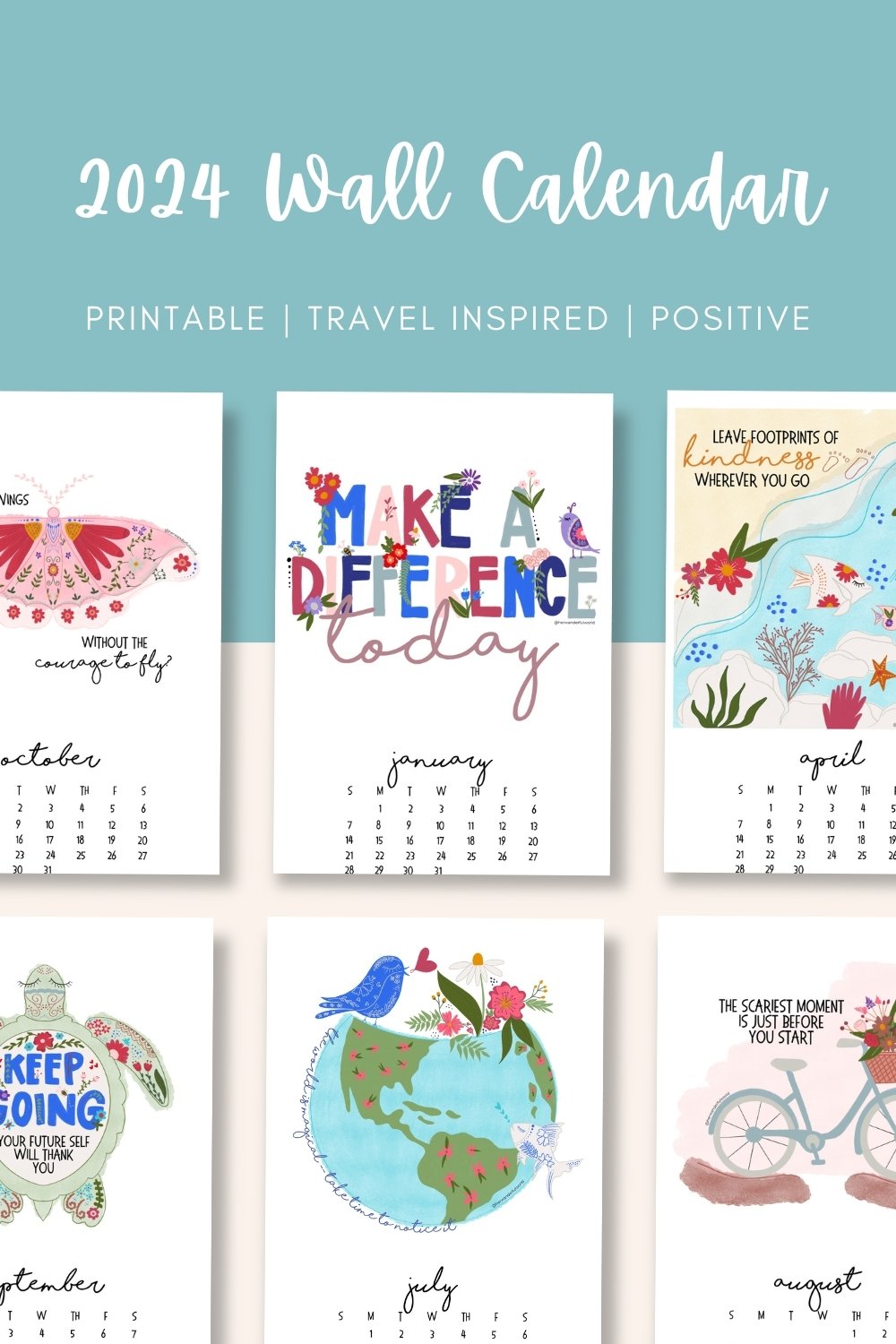 Once you print out your positive, travel-inspired 2024 wall calendar, you can set it on your desk, hang it on the wall, or set it as the background of your phone or tablet. The options are endless!