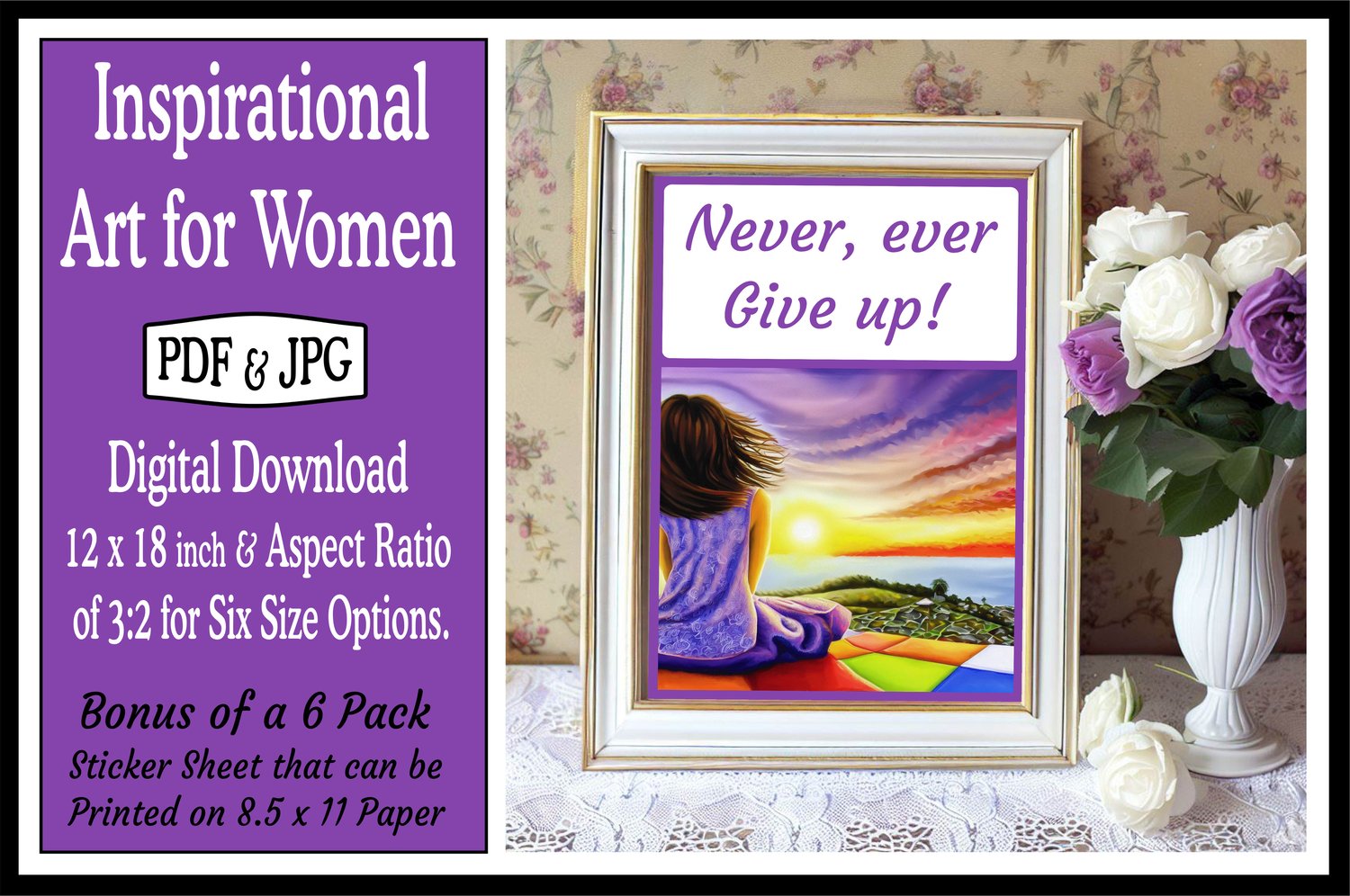 Never Give Up!, Women's Inspirational Art, JPG & PDF Formats, Bonus Sticker Pack