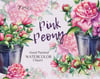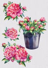 Peonies. Bouquets and garland. Love, birthday, wedding or Valentine's Day theme