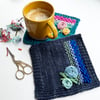 Play with weaving techniques and fibre textures to create the prettiest mug rug to grace the craft table. Use scrap yarns or those suggested. Top with the beverage of your choice.