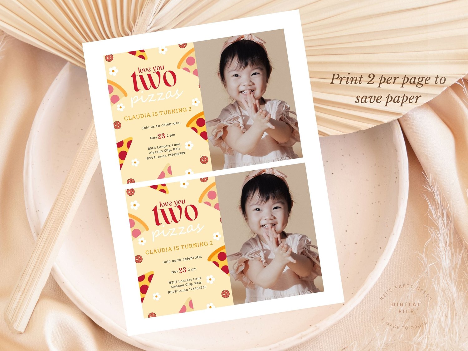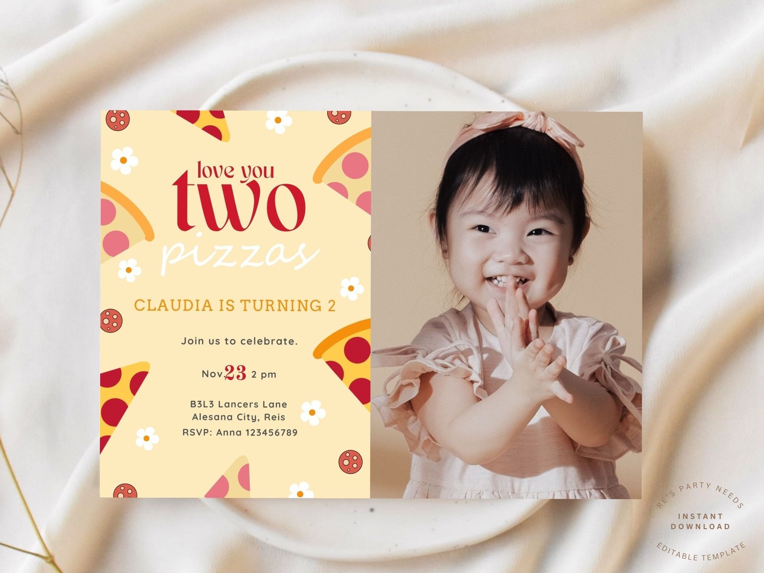 Editable Pizza Party Photo Invitation, Kids 2nd Birthday Invite, Second Birthday Pizza Love You 2 Pizza Italian, Instant Download Template