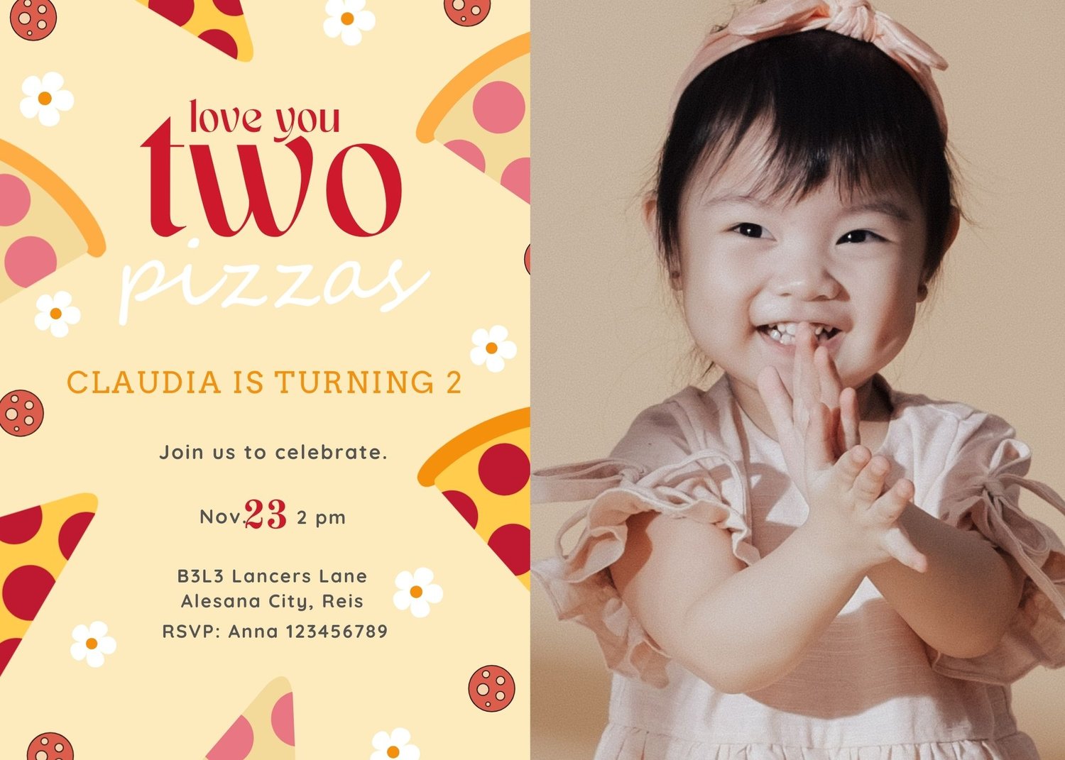 Second Birthday Pizza Party Photo Invite Template Italian Invitation Love You Two Pizza Party Birthday Printable Invitation