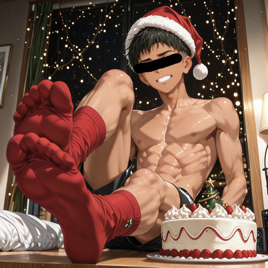 クリスマスをテーマに、サンタやトナカイコスプレをしている男性を、キャラクターごとにお任せ作成しました。男らしいキャラクターの魅力を思い切って表現しました。