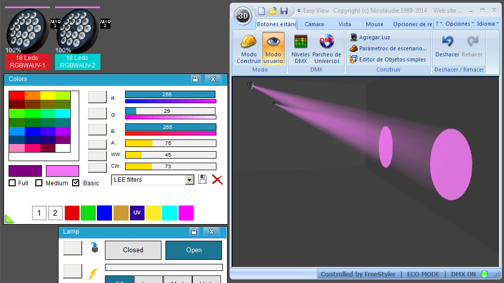 Esta Librería SSL2 está optimizada para trabajar con Magic 3d Easy View. Es decir para ver una representación 3D de las secuencias que estemos realizando con Freestyler, QLC+ o cualquier otro soft que se conecte con Magic 3d.