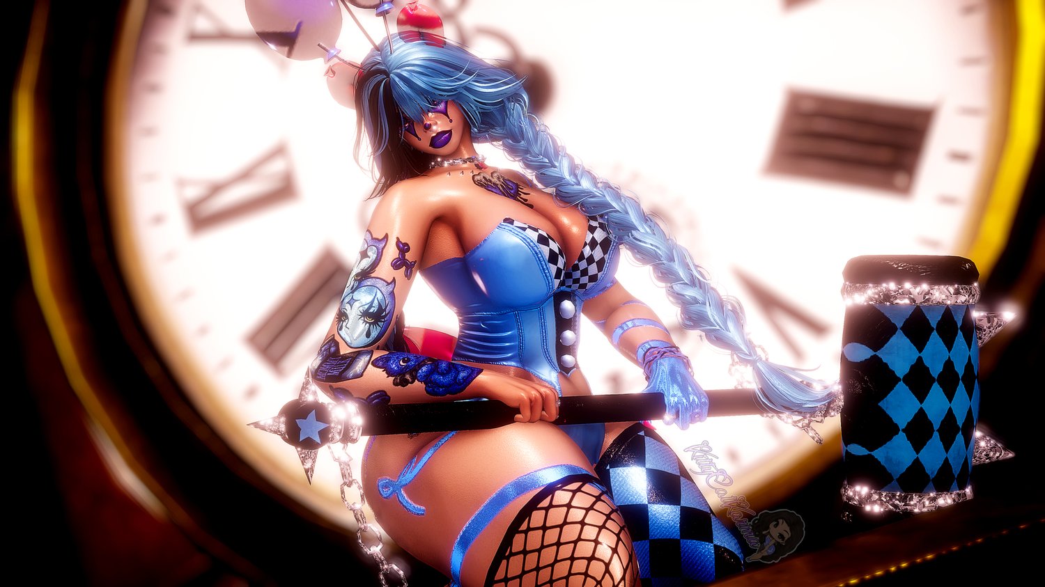 - Accessories- Silly Bands, Clown Nose, Clown Collar, 2 Clown Hats, Hammer, Horn, Arm Ruffles, Wrist Ruffles, Leg Ruffles, Balloons, Body Piercings, Belly Ring, Pie Butt, Garter, Necklace, Earrings, Anklet, Gummy Necklace, Nose Bow, Glasses, Mustache Septum, Rings