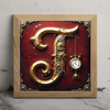 The letter J red velvet and gold steampunk character