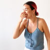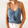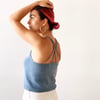 - Sample cami yarn: BettaKnit Love My Jeans (100% recycled denim cotton, 339yds / 310m, 3.5oz / 100g) in color Blue Jeans