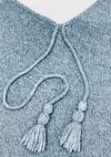 Thin double straps intertwine at the back, and the pattern contains ideas on different ways to do it. Optional tassels at the front can be added for a more playful look. The pattern is easy to adjust to fit almost any body type, no matter how the weight is distributed in your bust area. In a way similar to picking a bra cup and band size, the triangles for the front can be knit according to your half bust circumference, and the back can be worked for the size nearest to your half underbust. All necessary measurements are provided.