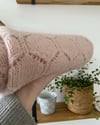 The Starting Point shawl is worked from the down to top in a soft and squishy mix of alpaca and wool yarn and 3-dimensional looking geometrical stitch pattern. Shawl has a perfect wrapping form and maximum of coziness. The Starting Point shawl begin just with few stitches and knitted to cuddly full-sized item. It’s no critical gauge required for this pattern: it can be used any yarn type and in the same time pattern and shawl form allows for easy turn this cosy shawl into even bigger shawl or smaller shawlette.