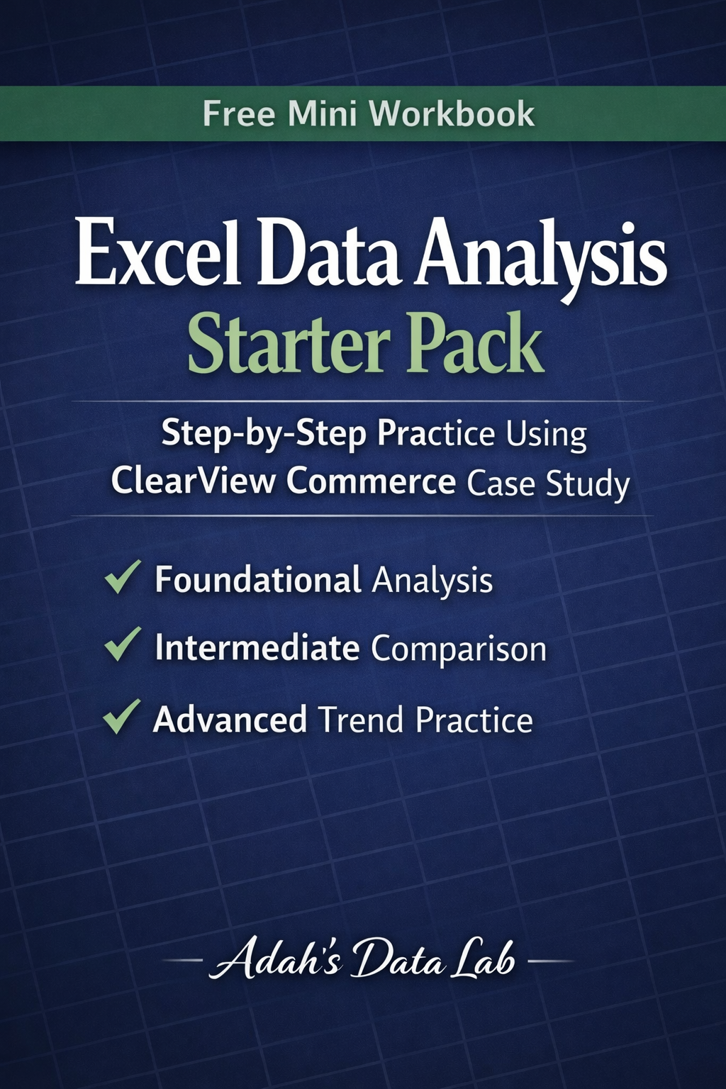 Want to practice Excel data analysis step-by-step before committing to a full workbook? This free starter pack is a structured preview from the Practical Excel Data Analysis Bundle by Adah’s Data Lab. Using the ClearView Commerce case study, this mini workbook includes: