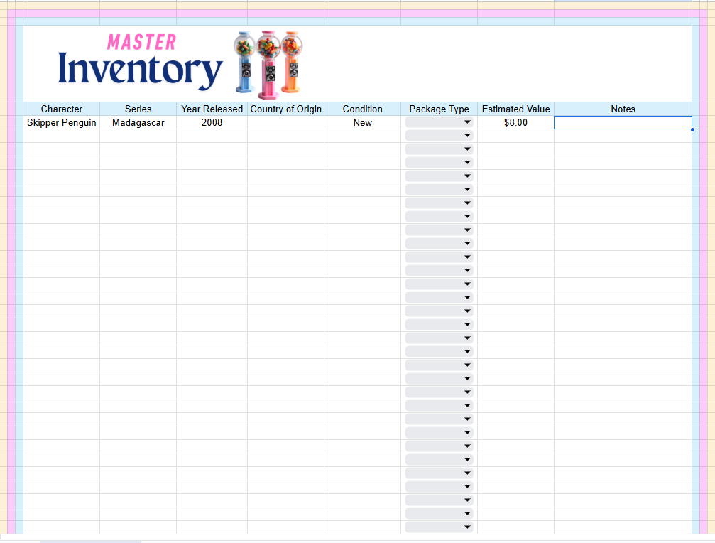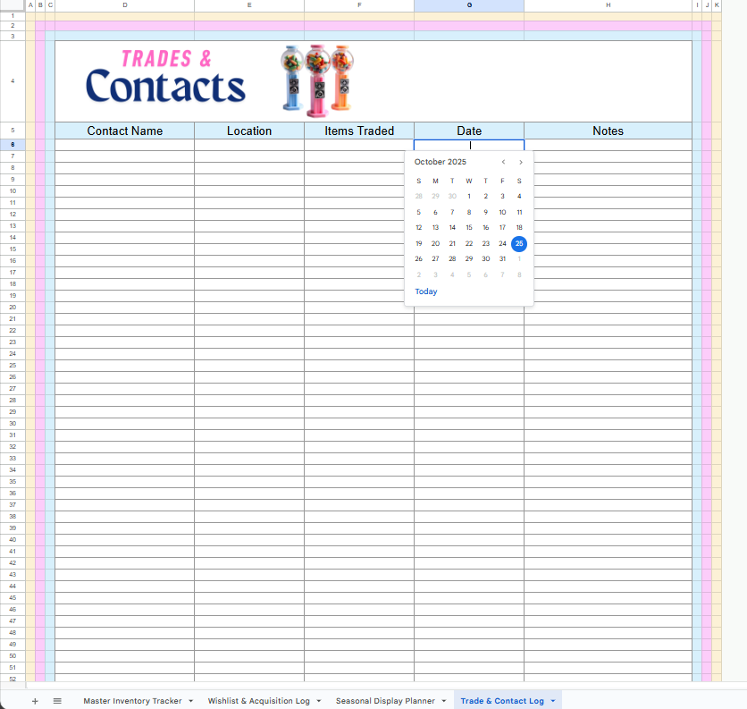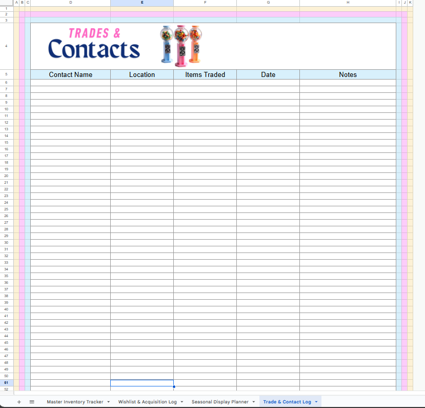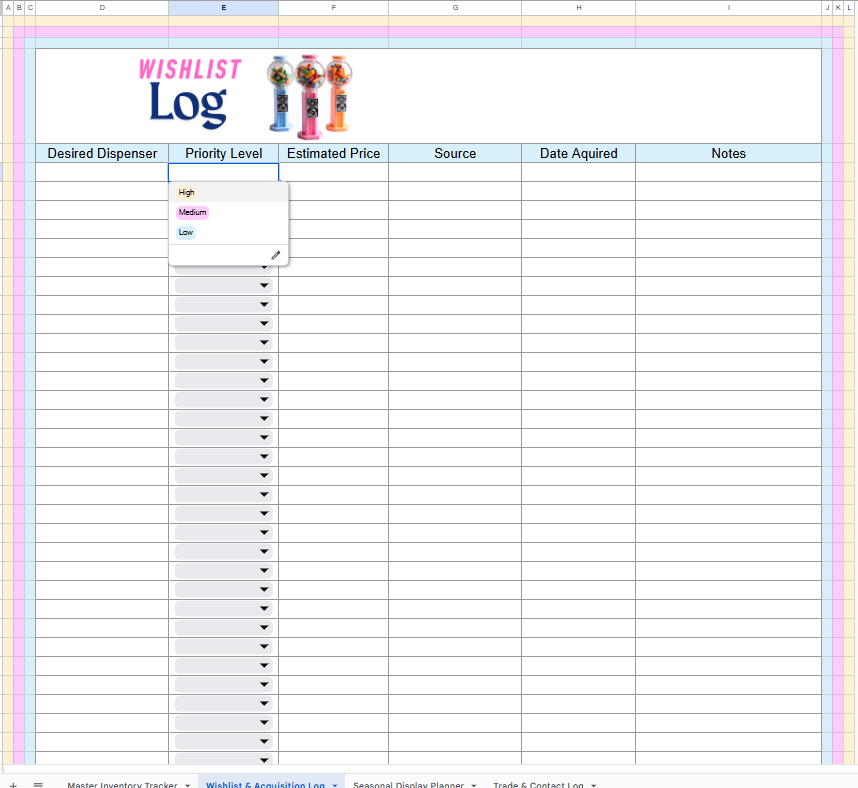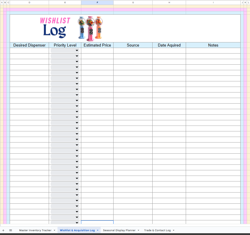 Easy-to-Read, Candy Dispenser Collecting Inventory Tracker - Google Spreadsheet – Large Print Format
