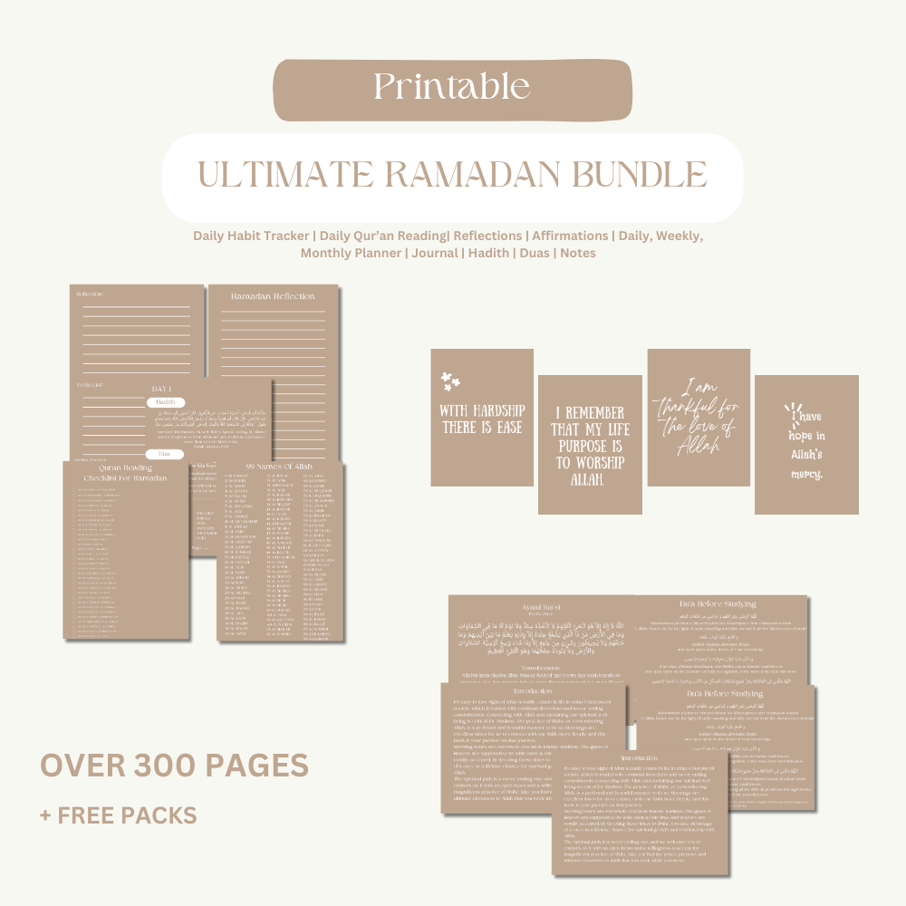 Prioritising Islam in your life is the foundation of every effective routine. Introducing our Ramadan Bundle, expertly designed to appeal to the Muslim lifestyle. By incorporating Islamic traditions into your everyday routine, this calendar will help you stay organised, focused, and profoundly connected to Allah.