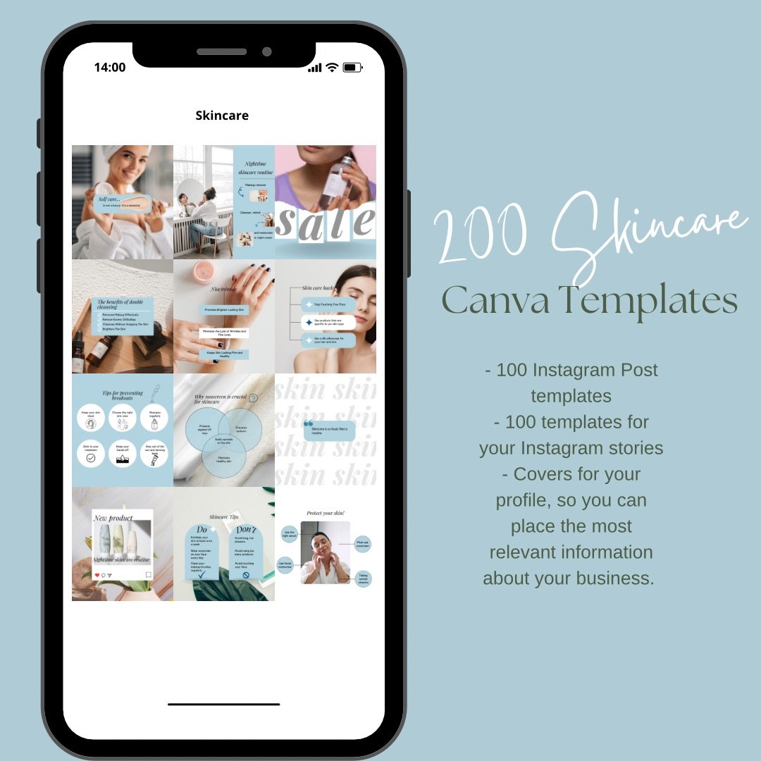 200 Skincare Templates, Elegant Social Media Post for Estheticians, Beauty Quotes, Dermatologist Template, Skincare Canva