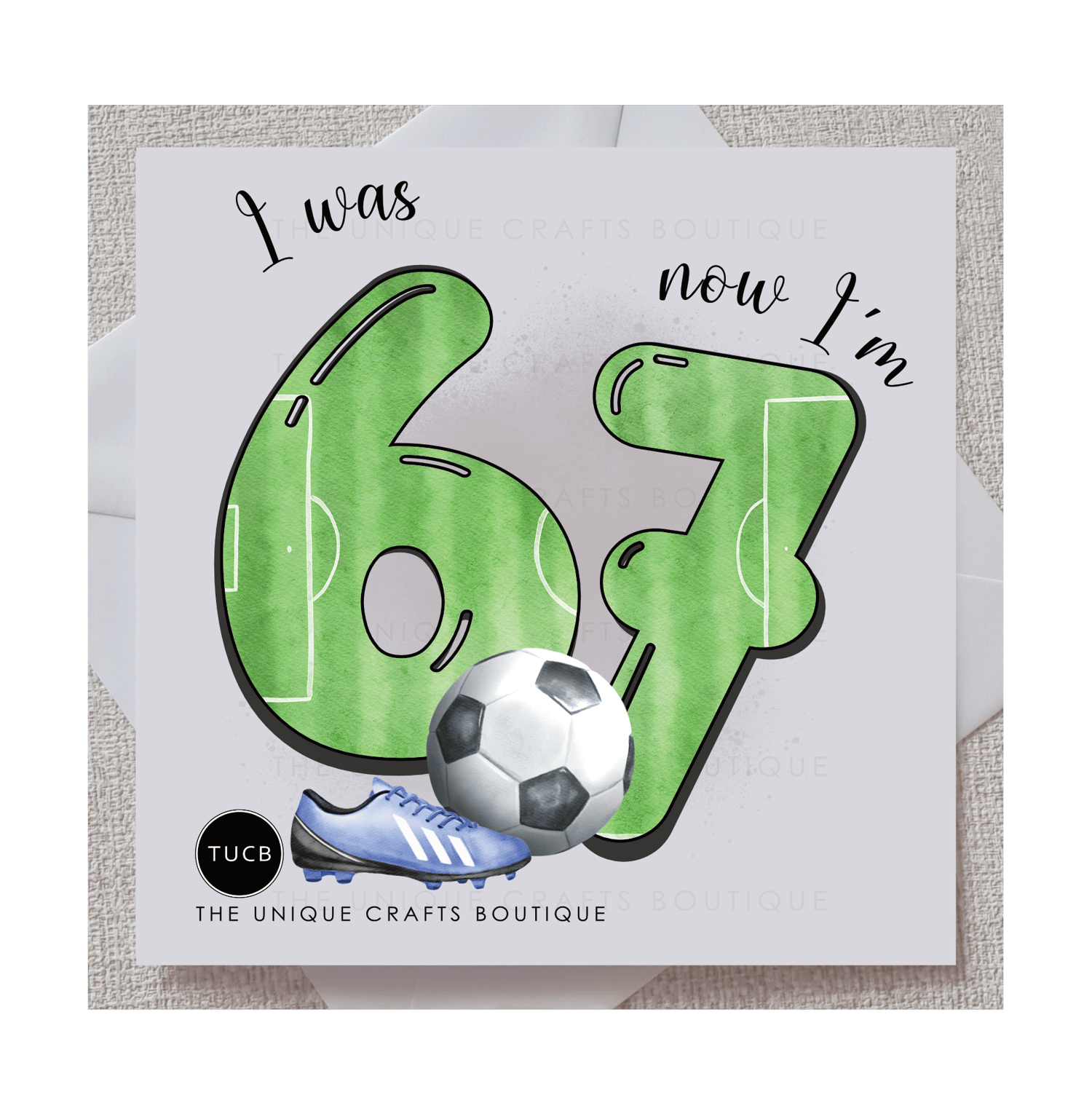 Printed with a cute football themed 6-7 and displaying the message 'I was 6 now I'm 7' this card is certain to make any football fan smile.