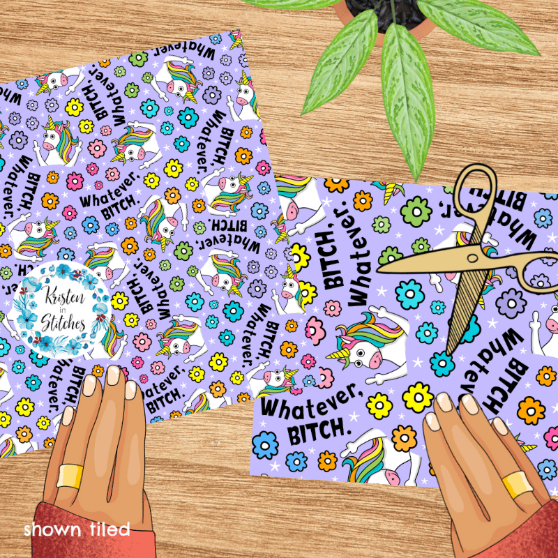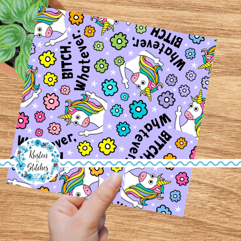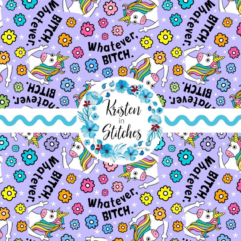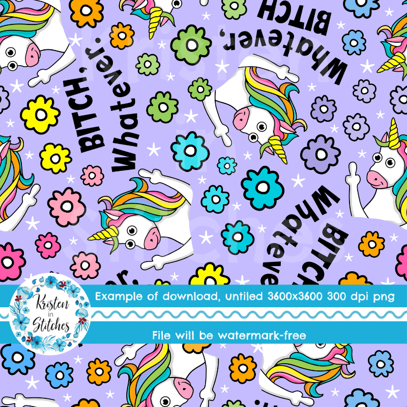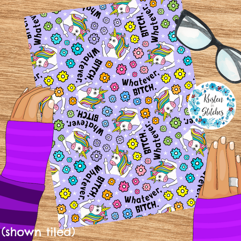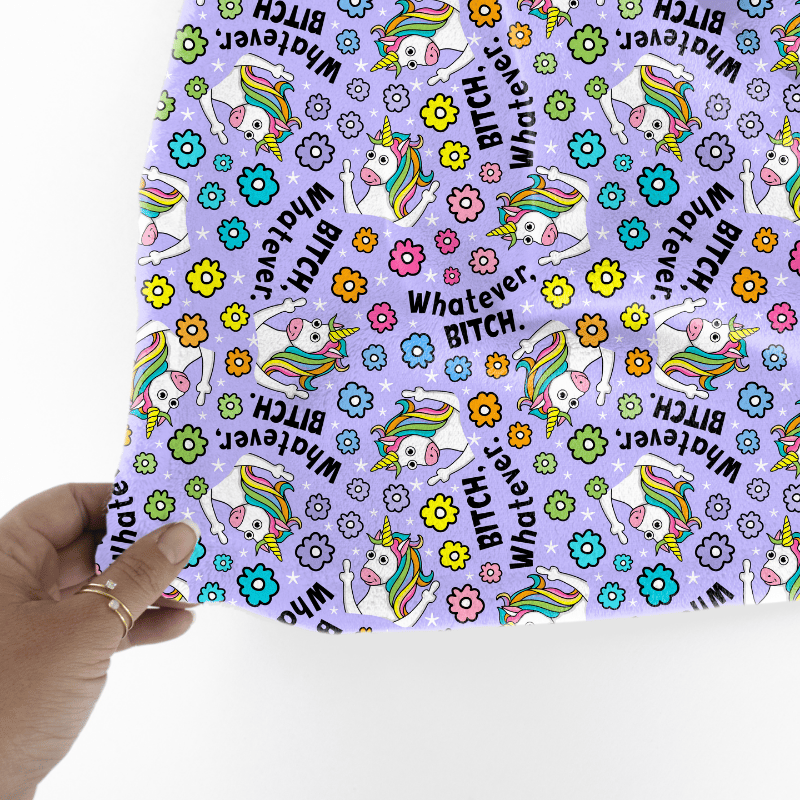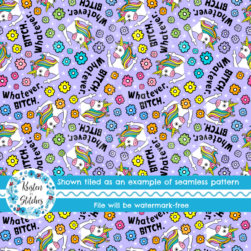 Whatever Bitch Sarcastic Unicorns Seamless Pattern, Middle Fingers, Purple