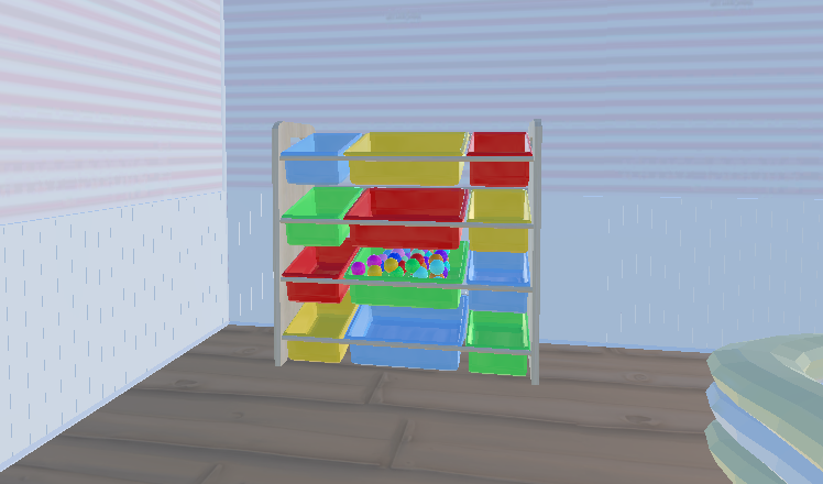 It comes with a couple prefabs one where you can pick up the boxs, one where you can pick up the boxes and it has gravity (laggy sooo be careful) and one where you dont pick them up but they still have their colliders so you can actually put items in there like balls an stuff very realistic an cute and all of those have two seprate color variants the "girly" one and the primary look one an fbx two textures many mats for the balls and boxes you can swap between if youd like. prefabs are fully ready to upload for a world just drop it in and your good you can edit all colors. For the balls prefab depending on the prefab or where it is the balls might spill soo be ready for a mess (you can again edited where the balls go you can make them closer to the floor and inside the pool but make sure they dont collide together because they may explode(go everywhere) on start haha.