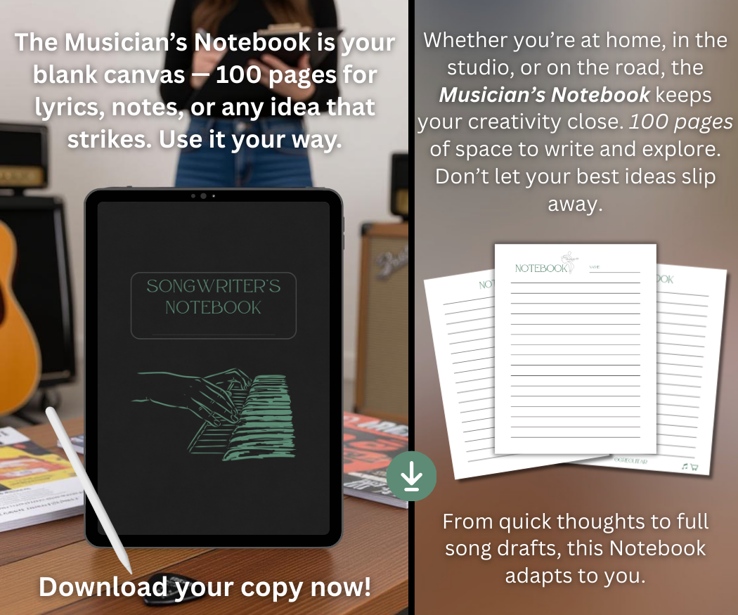 ✍️ The Songwriter’s Notebook is your blank canvas—100 pages for lyrics, notes, or sparks of inspiration. Whether at home, in the studio, or on the road, this notebook keeps your creativity close. Capture your best ideas before they fade.