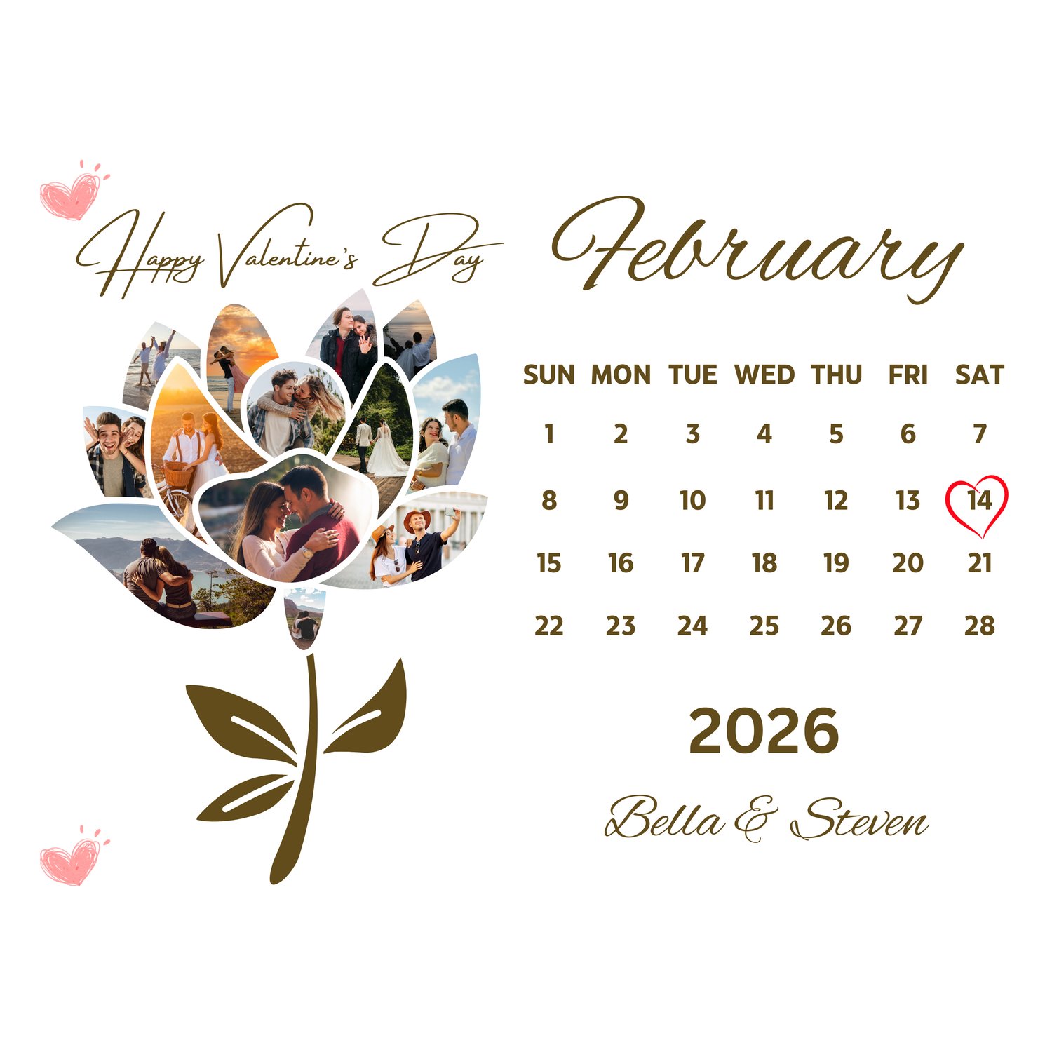 Flower Photo Collage Valentine Calendar Canva Template Part 1