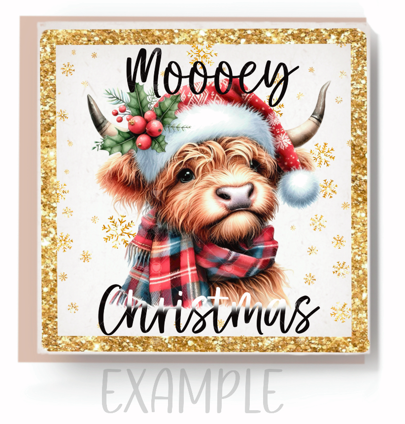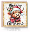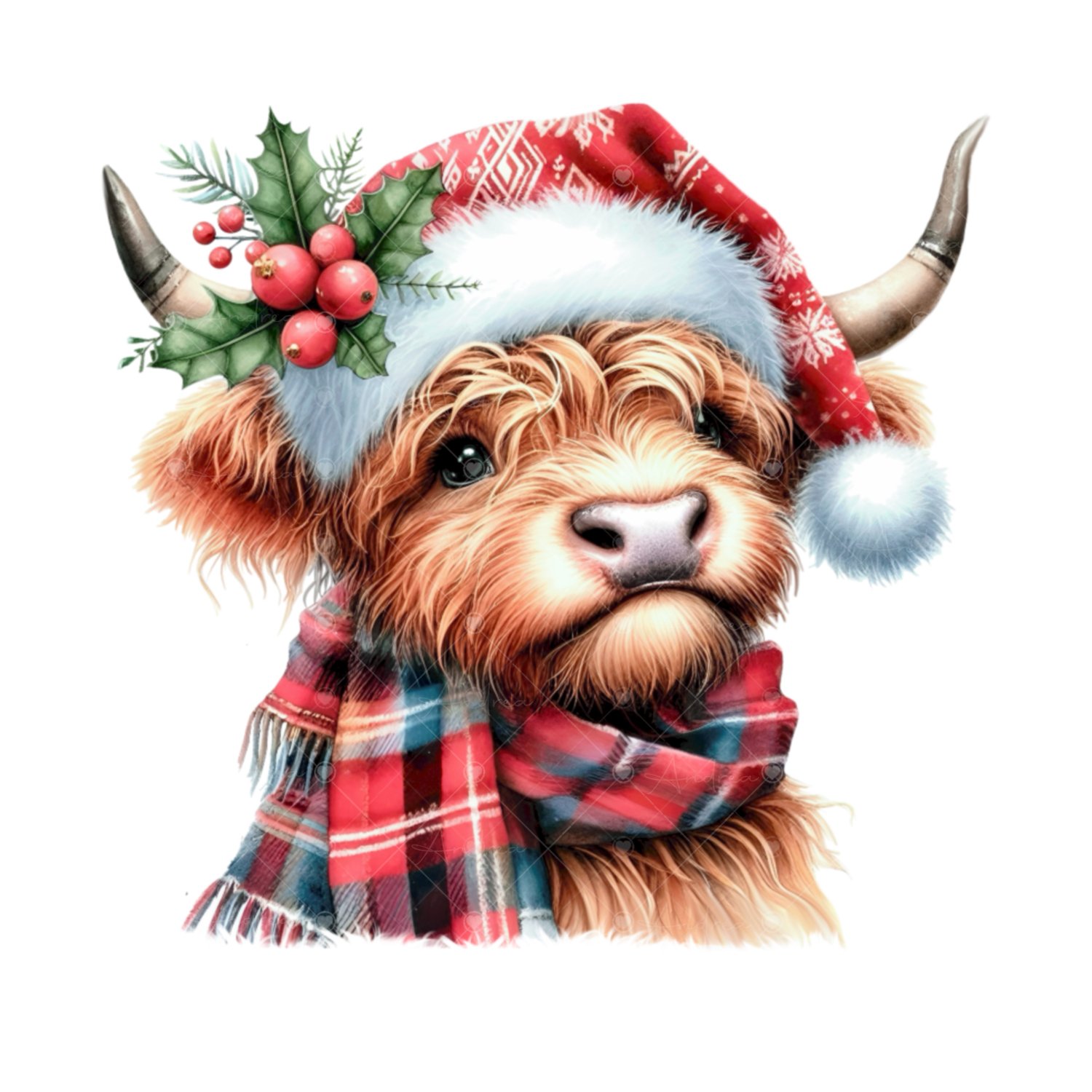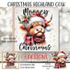 Beautiful Christmas highland cow. 3 PNGs; gold snowflake background and text, background plus gold frame, no background. Sublimation, print. You will receive 3 PNG files. Instant Download.