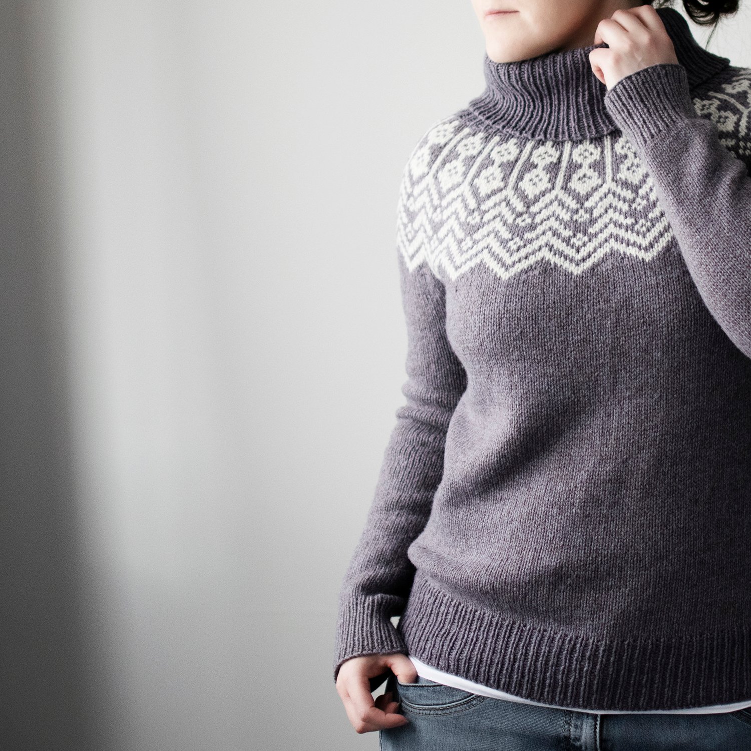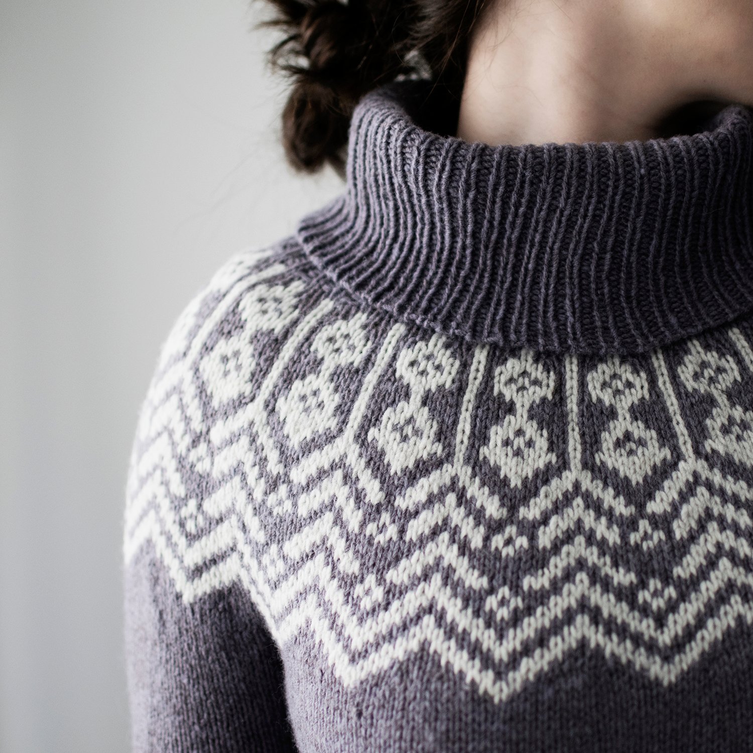 Balou is a classic circular yoke colorwork pullover to get cozy in on chilly days. You can choose between a crew neck and a turtleneck according to your preferences. With a simple colorwork design with very few long floats, this is also perfect for a first colorwork sweater project.