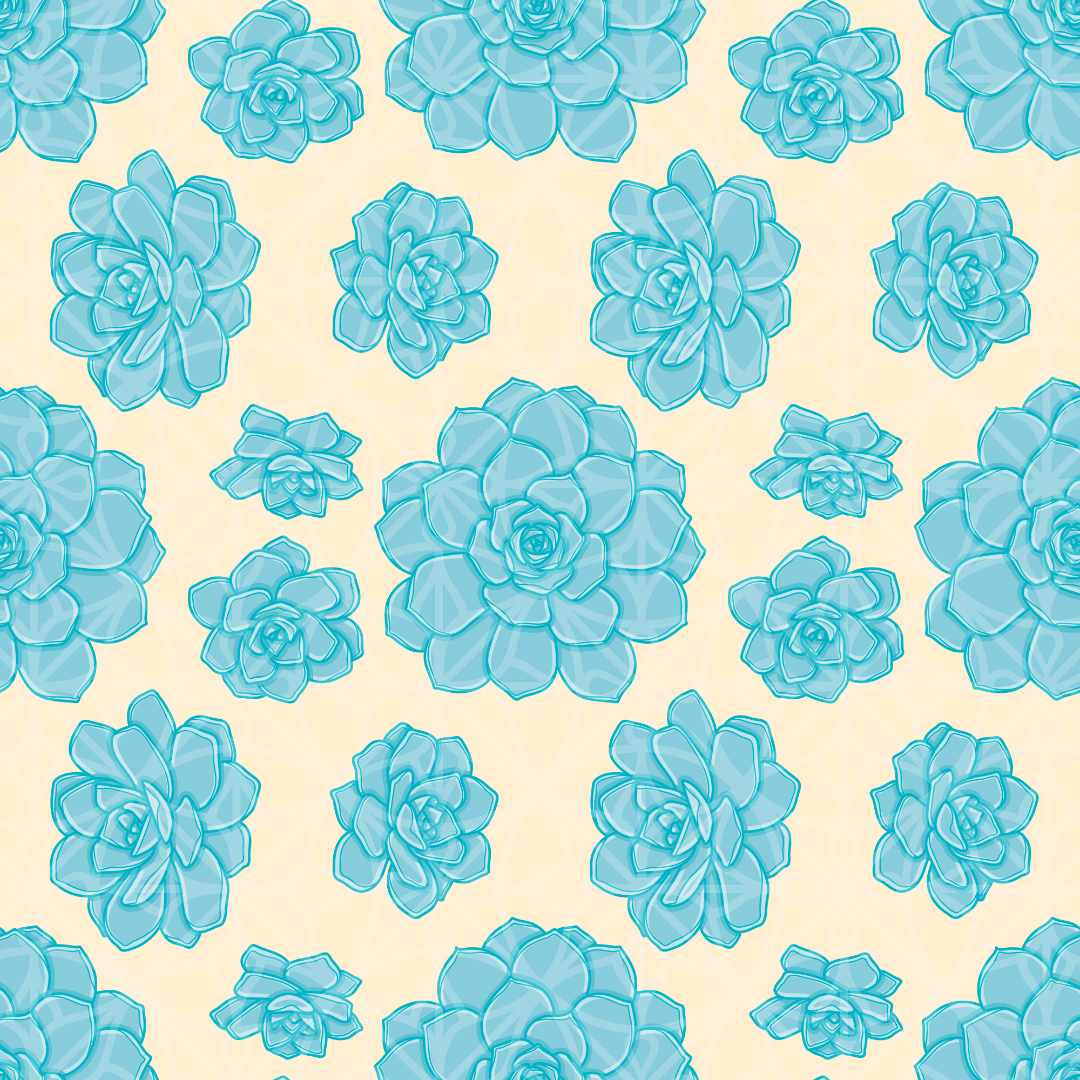 Vector Blue Rose succulent repeating pattern. Echeveria Imbricata seamless illustration background.