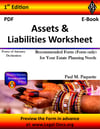 Assets & Liabilities Worksheet is a part of the Estate Planning Series offered by Paquette Publications. The form (Assets & Liabilities Worksheet) provides an easy, straightforward balance sheet (Asset minus Liabilities).