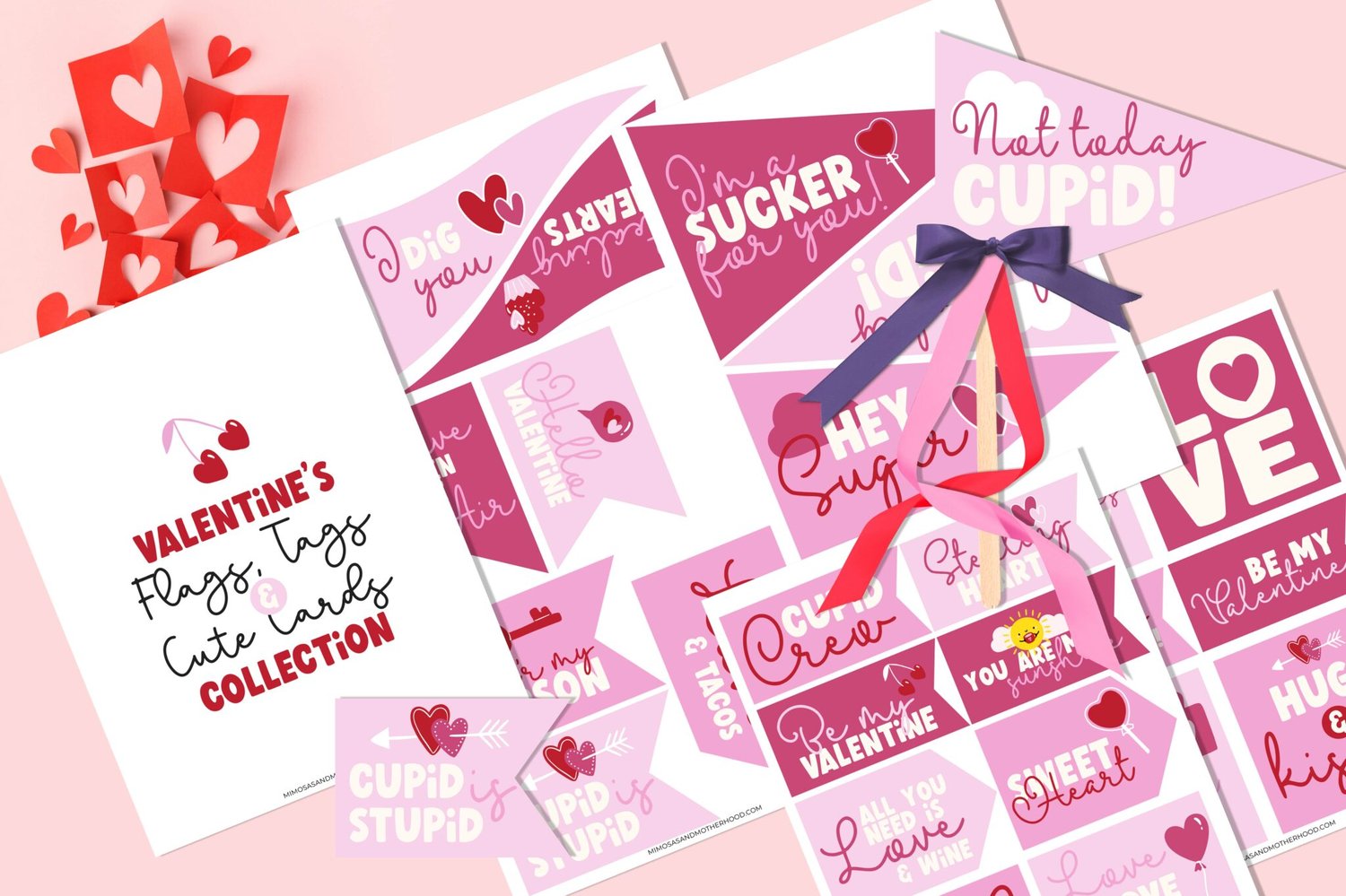 Decorate a love box, Valentine's basket, or places around your home with this printable Valentine's Decor Set! This printable pack includes colorful festive pennant flags, small sized Valentine tags to create a cute banner, and gift tags to add a little something extra special to your love day gifts! Your kids will also love playing with these cute flags and pennants too!