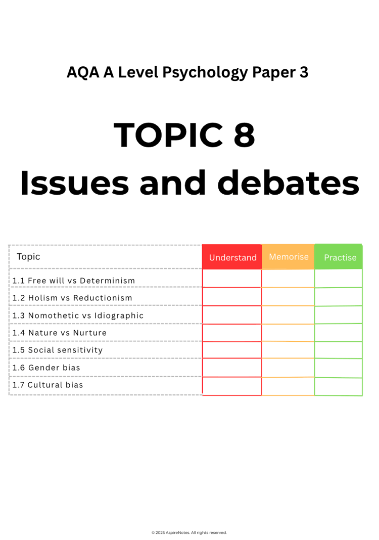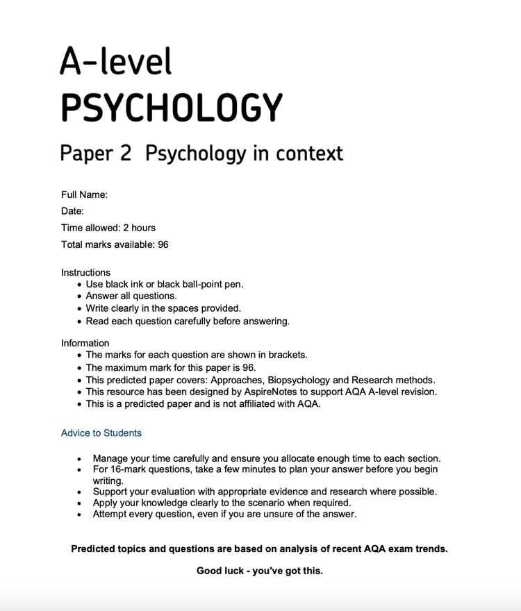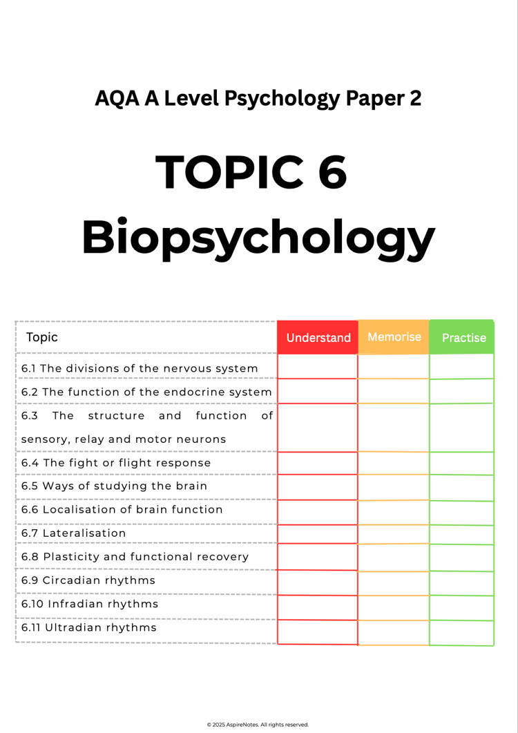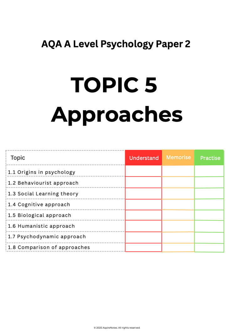 This Paper 2 bundle brings together all three core AQA topics (Approaches, Biopsychology, and Research Methods) in one complete, easy-to-follow pack. Each section is designed to simplify complex theories, strengthen evaluation skills, and boost exam performance. With clear structure, precise explanations, and focused exam application, you can revise with confidence and clarity