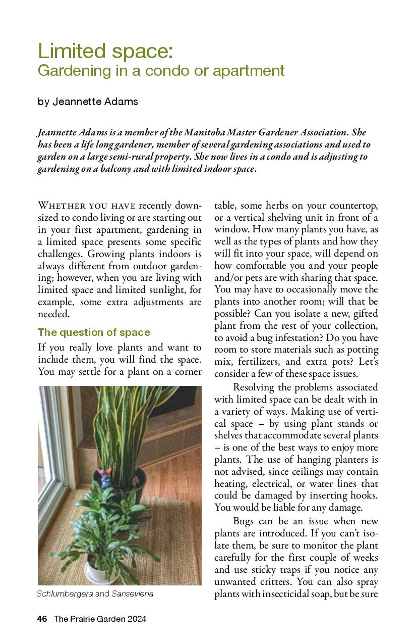 There’s a tiny hummingbird flitting round the patio trellis, looking for the nectar from the red mandevilla cascading from its planter high on the trellis wall. The hummingbird can be considered symbolic of our Prairie summer: it is beautiful in the sun, as delicate as some of our summer flowers, and most of all, a fleeting presence. In addition to those beautiful brief summers, we must also contend with long, dark, and often stormy Prairie winters, and so we need to look at bringing our gardening activities indoors.