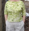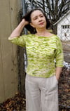 Green Apple pullover is slightly cropped and has straight body silhouette and is worked in the round from bottom up. The Body length is easy to modify just adgusting the number of rounds worked before armhole shaping.