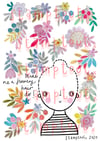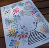 An A4 sheet featuring a cute bust and lots of sprigs of flowers (handpainted by me) which you can use to create some wild hair dos!