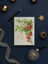 Keywords: vintage Christmas postcard, holly and berries illustration, nostalgic holiday card, mistletoe decor, classic Christmas art, printable holiday card, retro Christmas decor, seasonal scrapbook supplies, festive gift tag, holiday postcard printable, traditional holiday illustration.