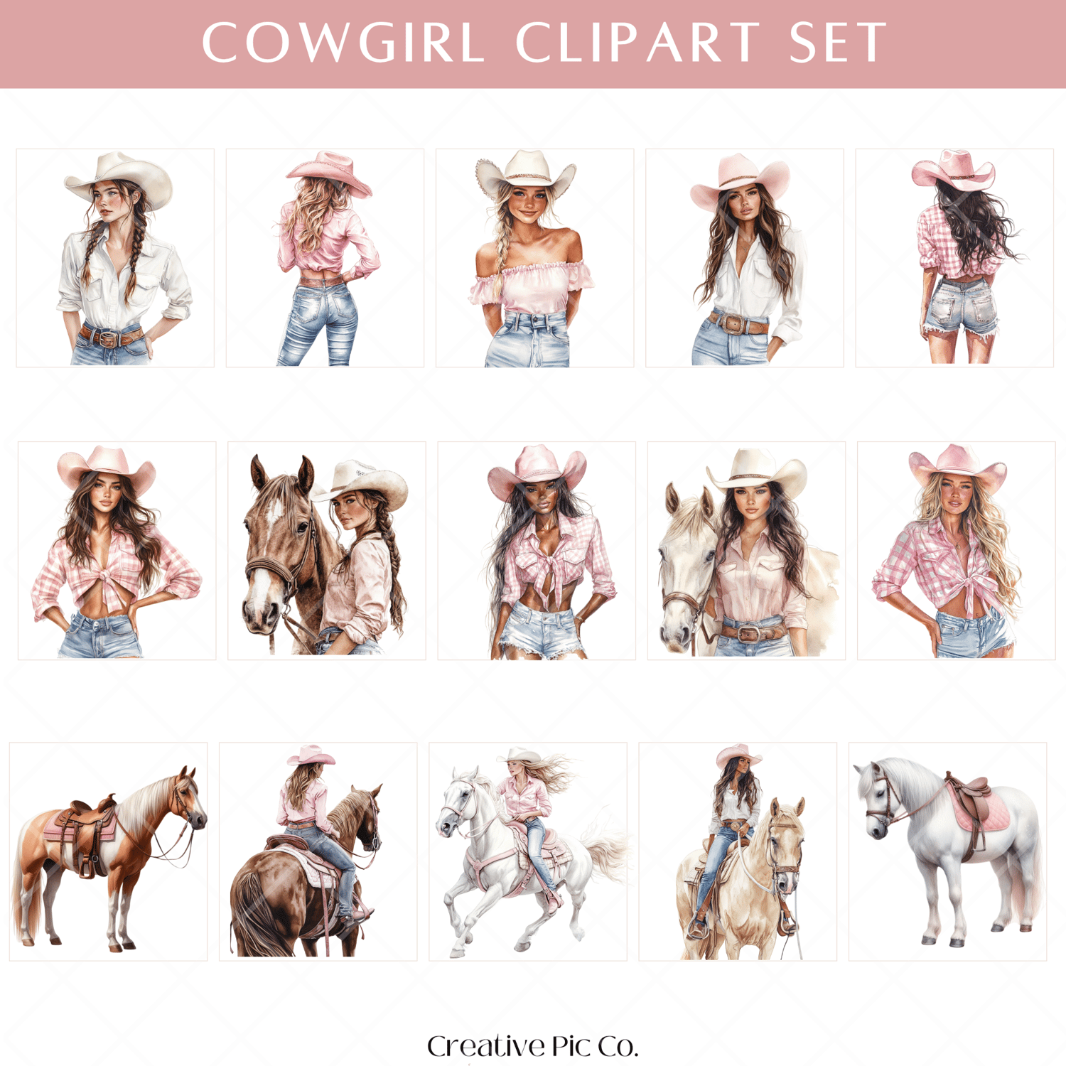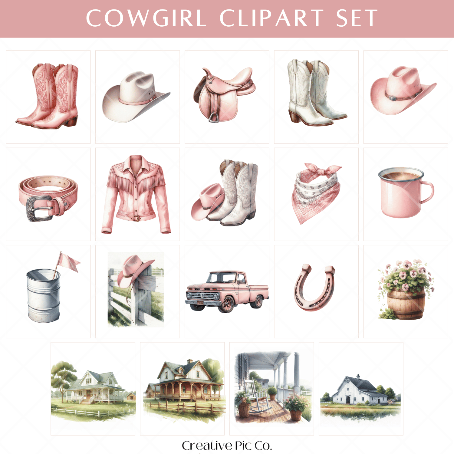 Saddle up! This Cowgirl Clipart Set is full of charm, grit, and feminine Western flair. Featuring 34 hand-curated PNGs, you’ll find classic cowgirl boots, wide-brimmed hats, pretty pink saddles, horses, and ranch moments that feel straight from the prairie. It’s soft, stylish, and perfect for adding that modern country-girl energy to your creative projects, branding, or digital scrapbooks.