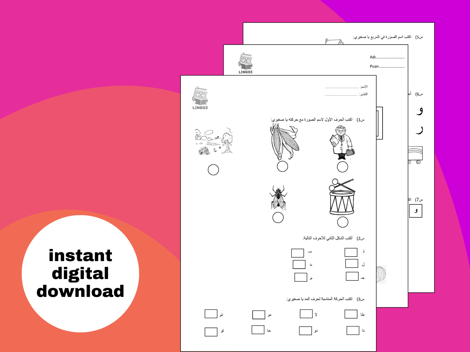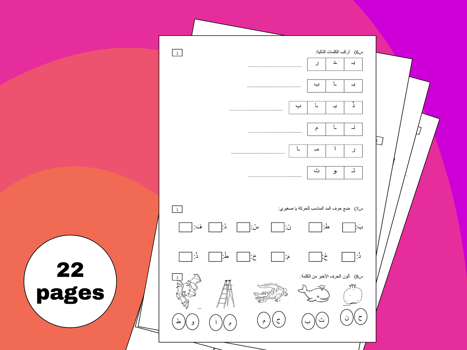 يتضمن هذا الكتاب نسخًا من أوراق تمارين الكتابة والقراءة، وهو مصمم لتعليم اللغة العربية بطريقة ممتعة وفعالة.