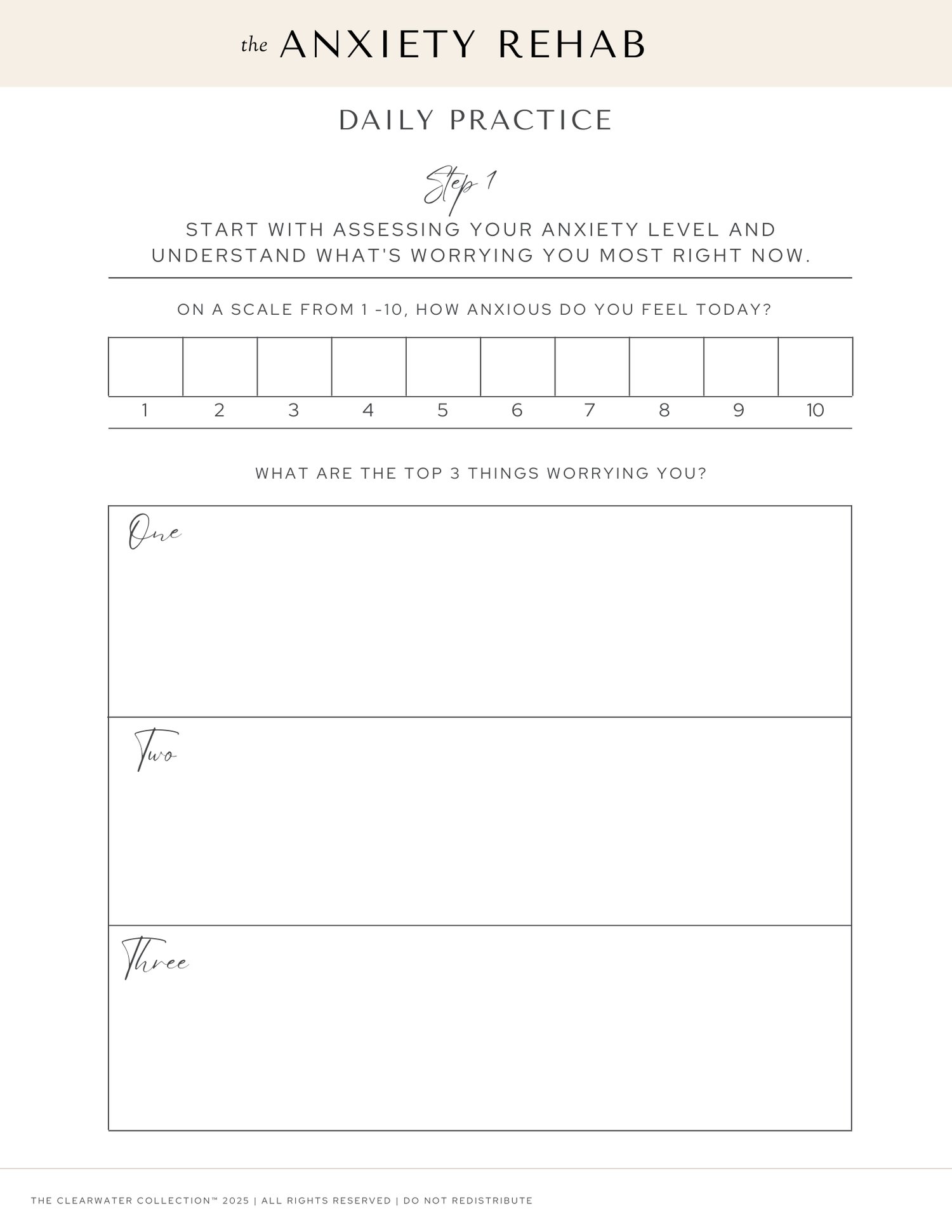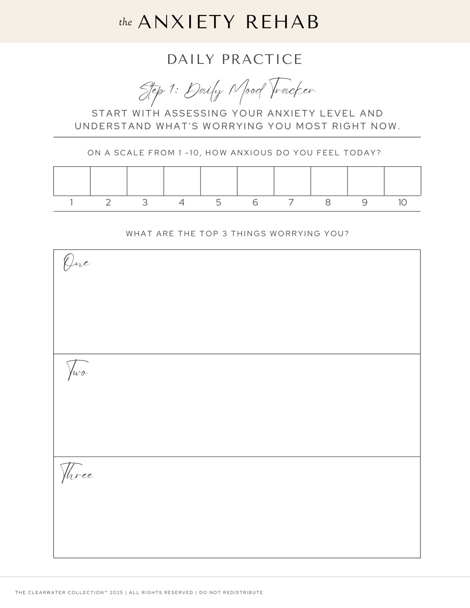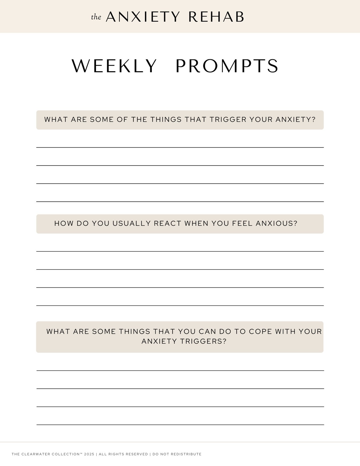 The Anxiety Rehab Journal by The Clearwater Collection. This thoughtfully designed 94-page guide is your companion on the journey to calm, clarity, and control.