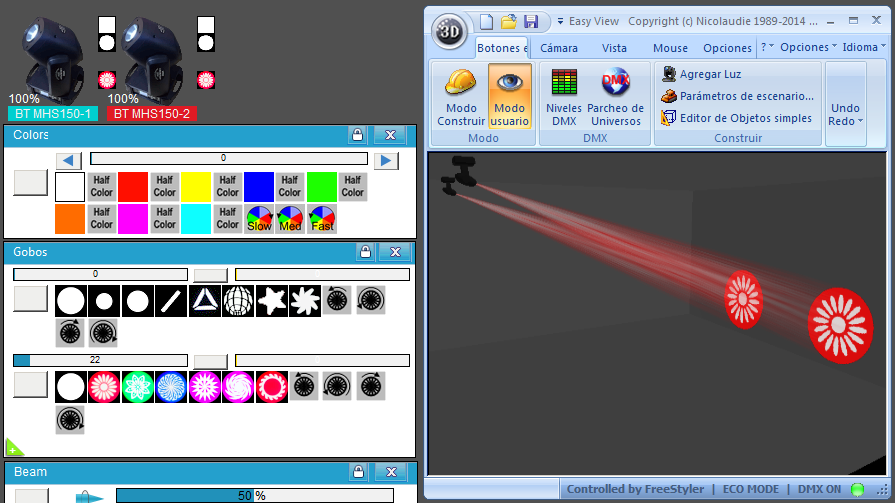 Si bien es un fixture de Sunlite al fin de cuentas, no garantizo el funcionamiento 100% con Sunlite Suite 2 para controlar equipos. Sólo está probado con Magic 3d Easy View.
